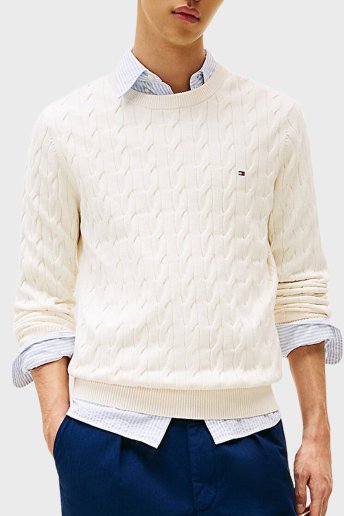 Pamuklu Relaxed Fit Örgülü Bisiklet Yaka Erkek Kazak MW0MW33132 Z00 AÇIK BEJ