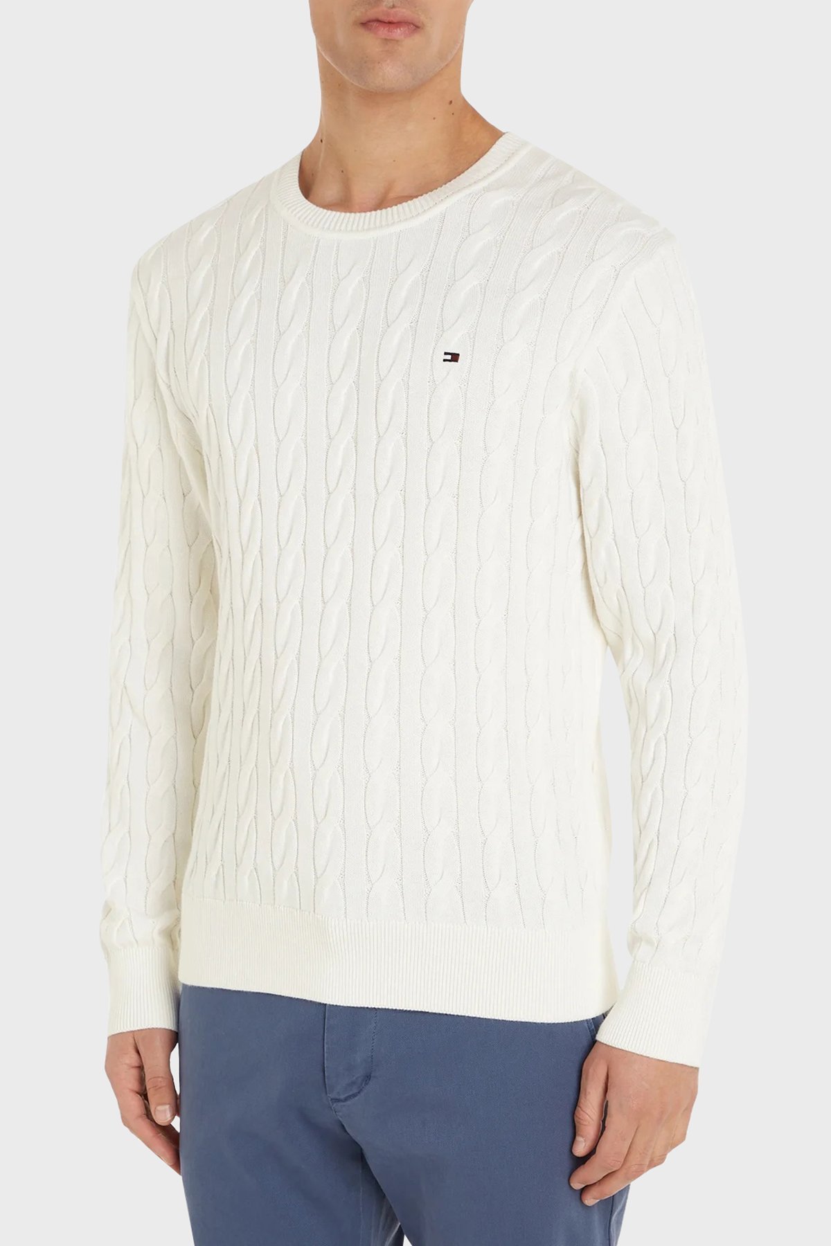 Pamuklu Relaxed Fit Örme Erkek Kazak MW0MW33132 YBI BEYAZ