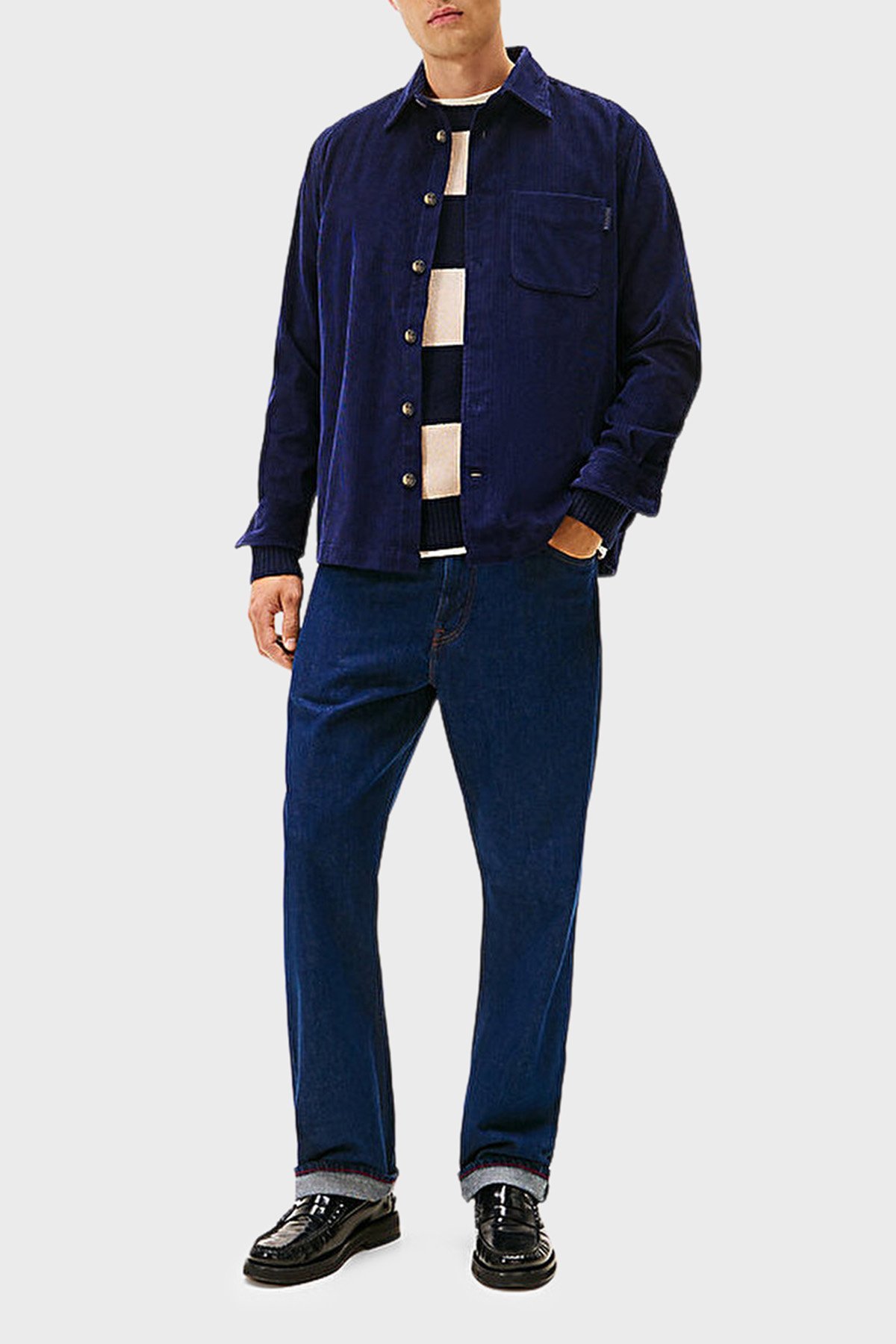 Pamuklu Relaxed Fit Uzun Kollu Kadife Erkek Gömlek MW0MW40489 BCL LACİVERT