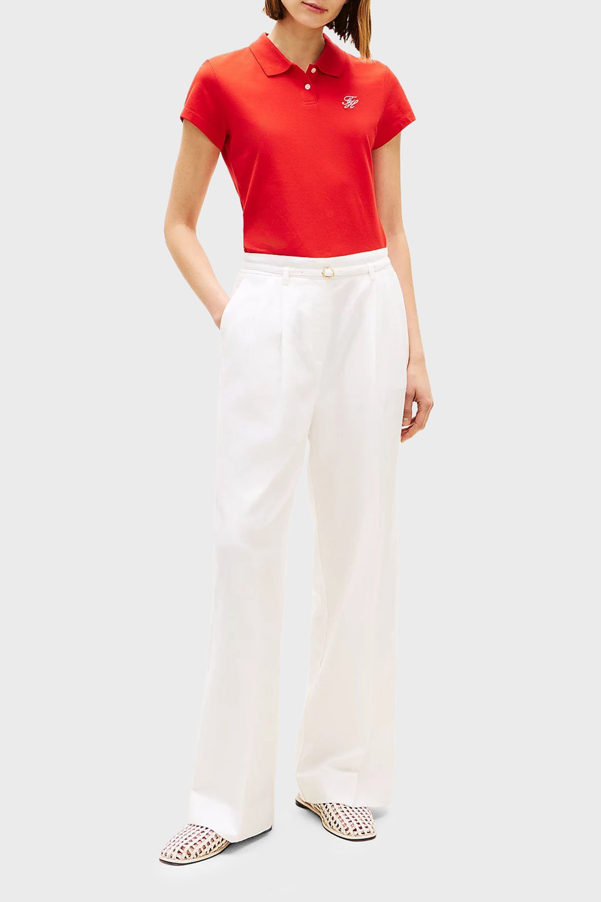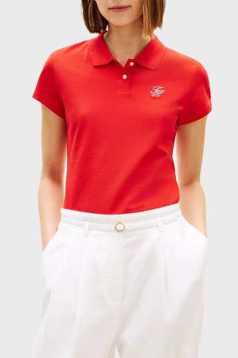 Pamuklu Slim Fit Düğmeli Bayan Polo Yaka T Shirt WW0WW49259 SNE KIRMIZI