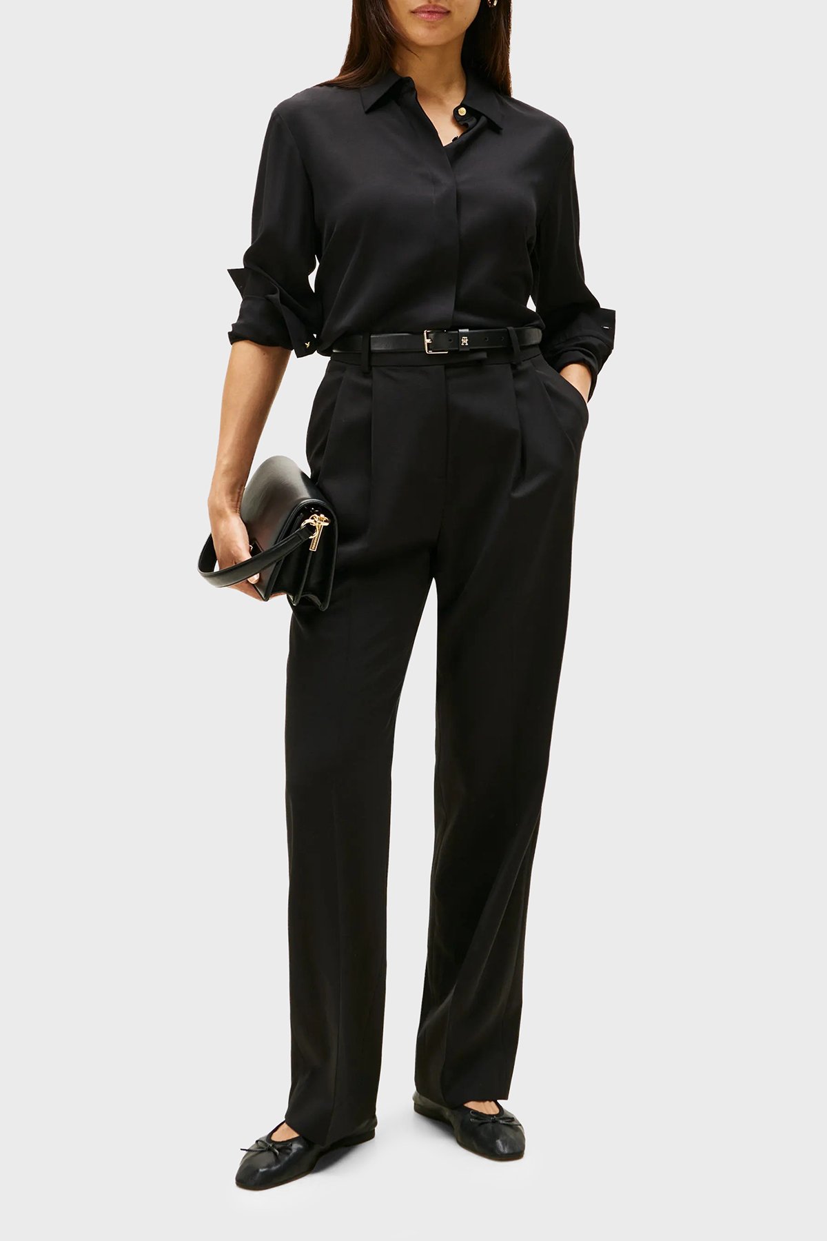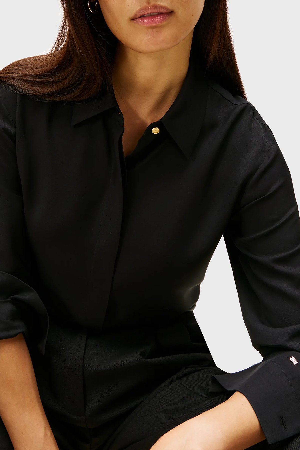 Regular Fit Klasik Yaka Uzun Kollu Bayan Gömlek WW0WW46597 BDS SİYAH