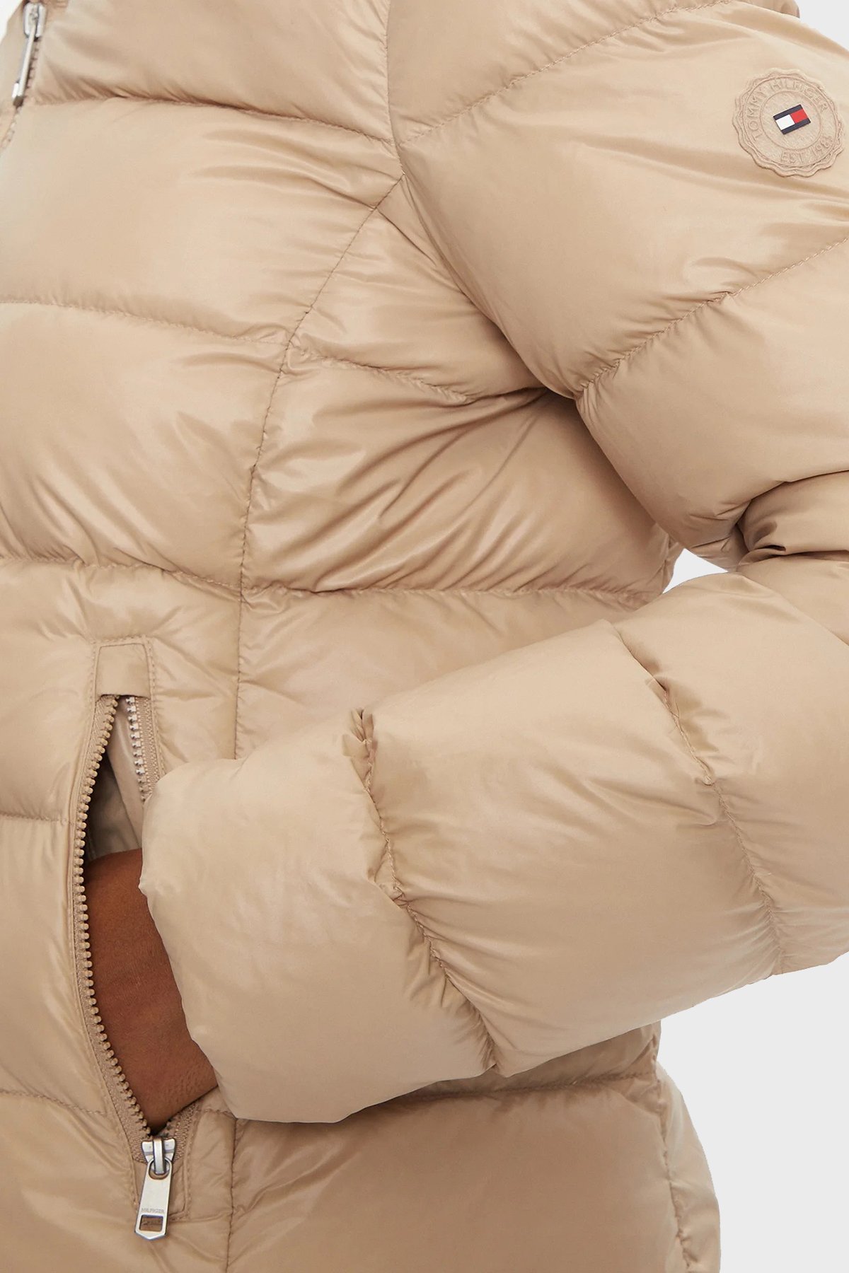 Regular Fit Su İtici Kuş Tüyü Dolgulu Kapüşonlu Şişme Bayan Mont WW0WW43520 AEG BEJ