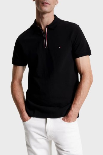 Slim Fit % 100 Pamuklu Fermuarlı Erkek Polo Yaka T Shirt MW0MW31677 BDS SİYAH