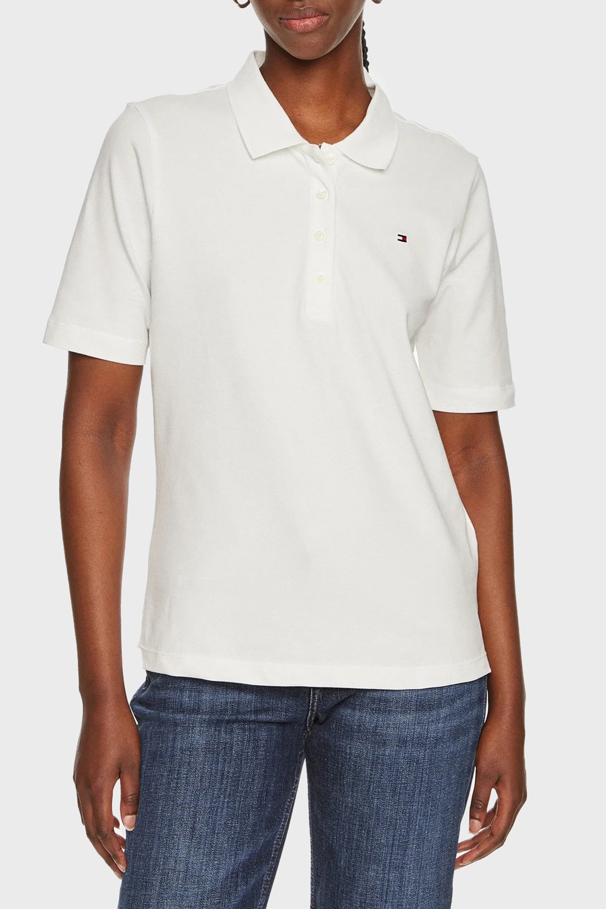 Streç Pamuklu Regular Fit Düğmeli Bayan Polo Yaka T Shirt WW0WW43224 YBL BEYAZ