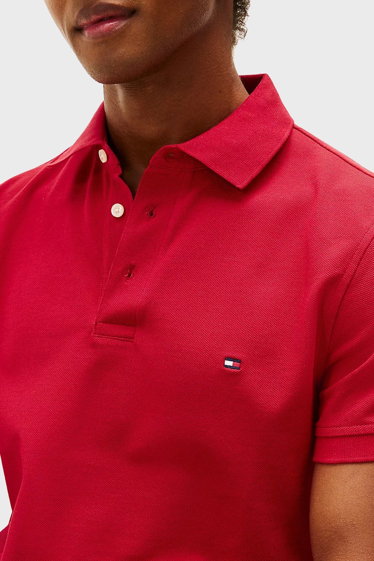 Streç Pamuklu Slim Fit Düğmeli Erkek Polo Yaka T Shirt MW0MW17771 XLD KIRMIZI