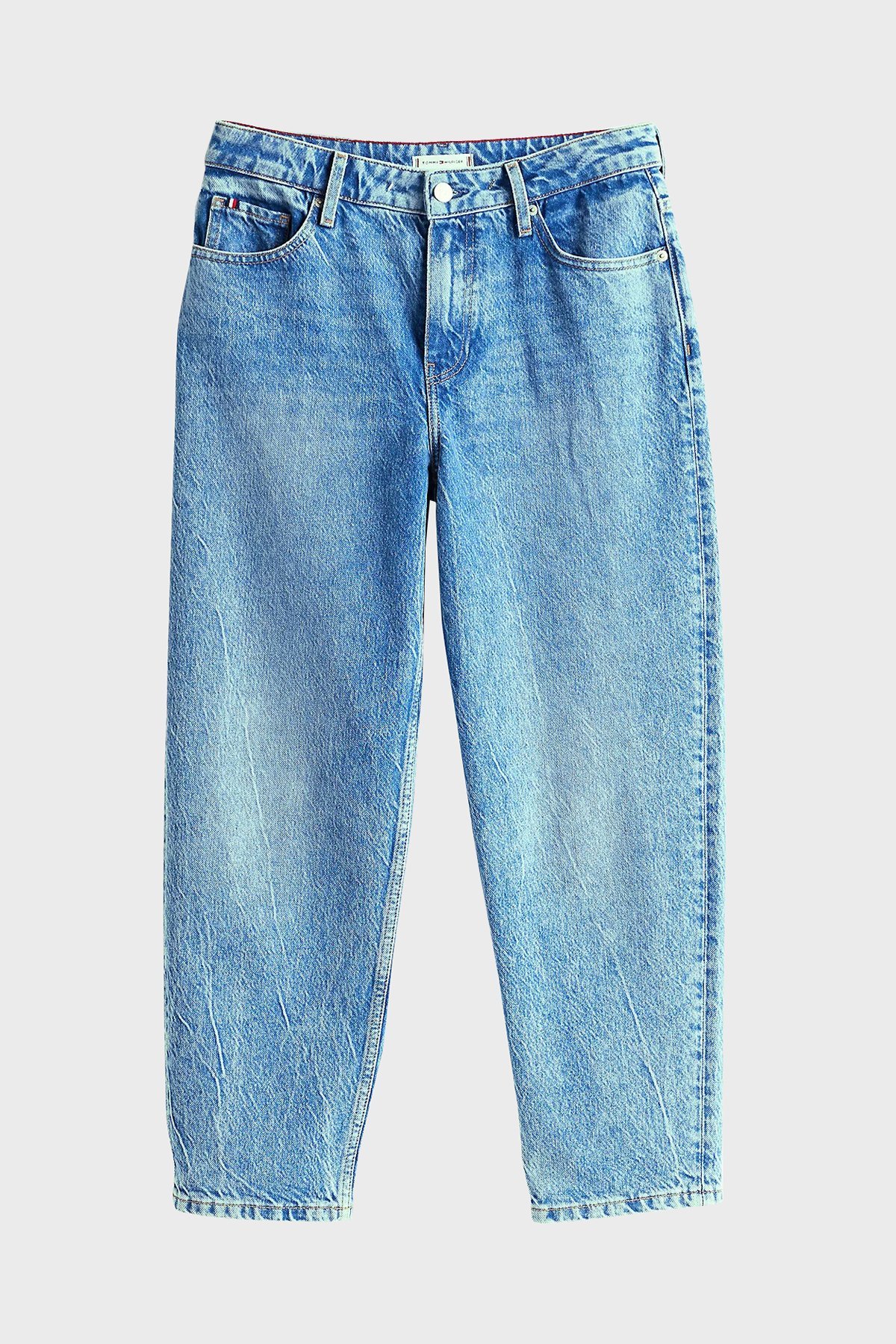 Streç Pamuklu Tapered Fit Yüksek Bel Daralan Paça Jeans Bayan Kot Pantolon WW0WW44365 1A8 MAVİ