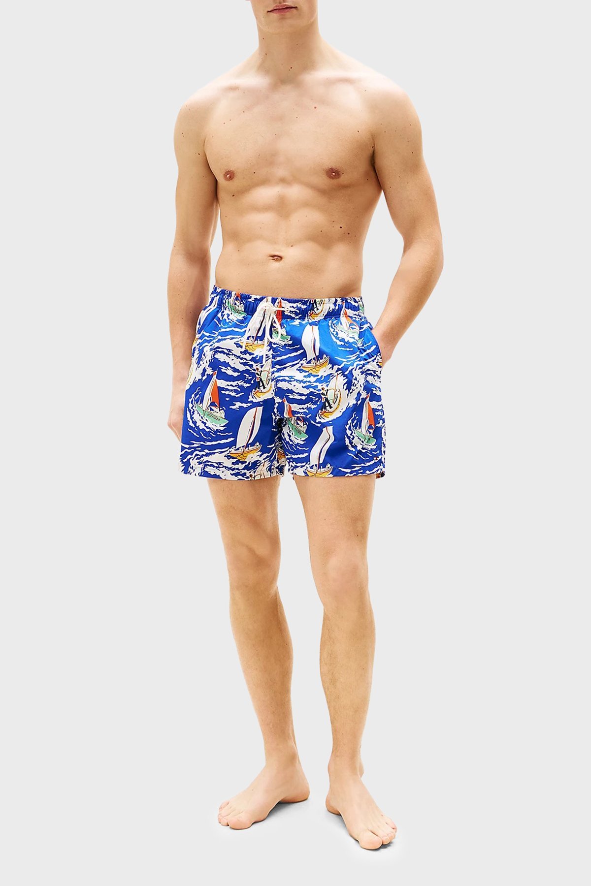 Tamamı Desenli Regular Fit Cepli Erkek Mayo Short UM0UM03491 0K8 MAVİ-BEYAZ