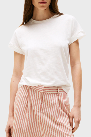 Yumuşak Dokulu Pamuklu Regular Fit Bisiklet Yaka Bayan T Shirt WW0WW45747 YBL BEYAZ