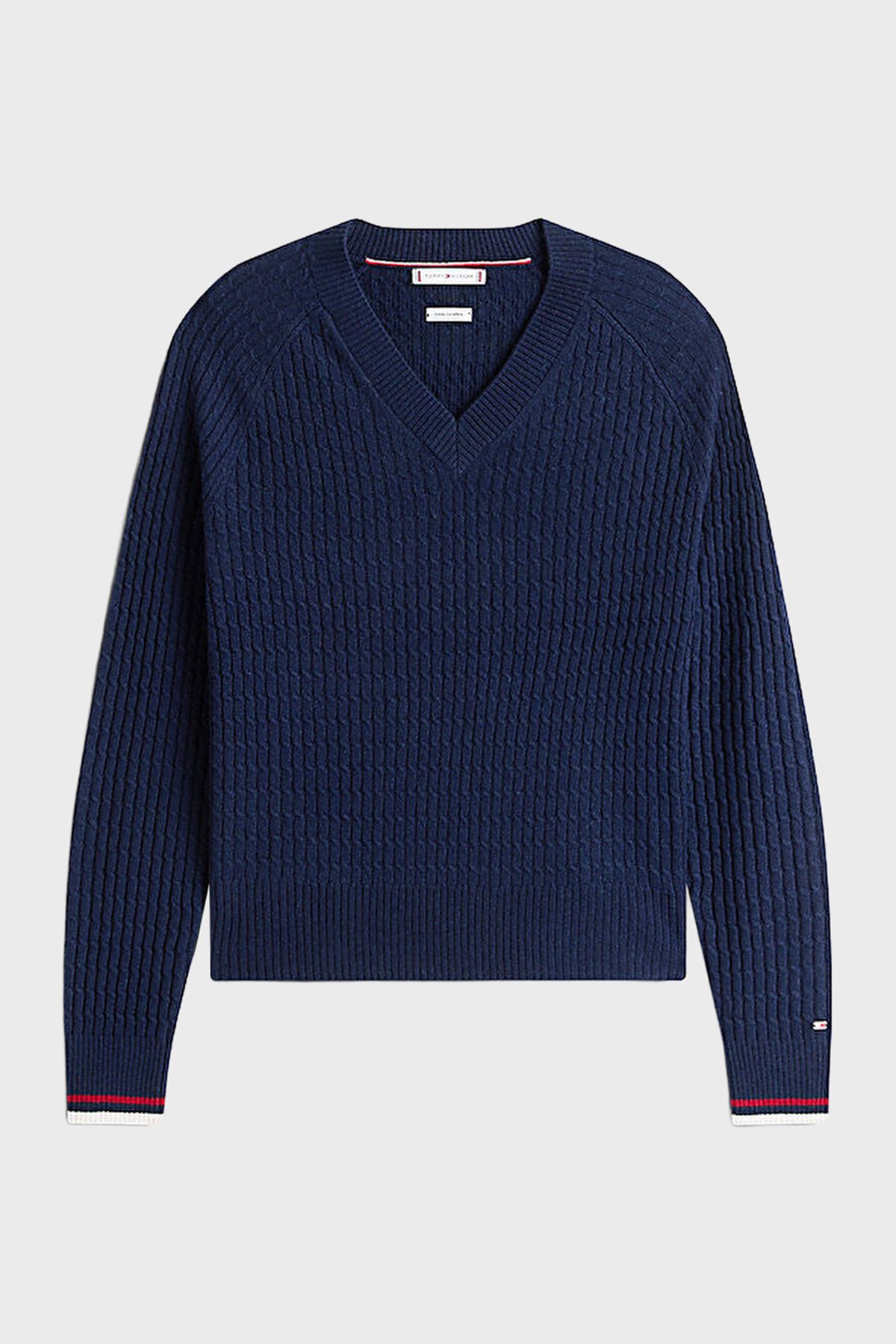 Yün ve Kaşmir Karışımlı Relaxed Fit V Yaka Bayan Kazak WW0WW46417 0Z0 LACİVERT