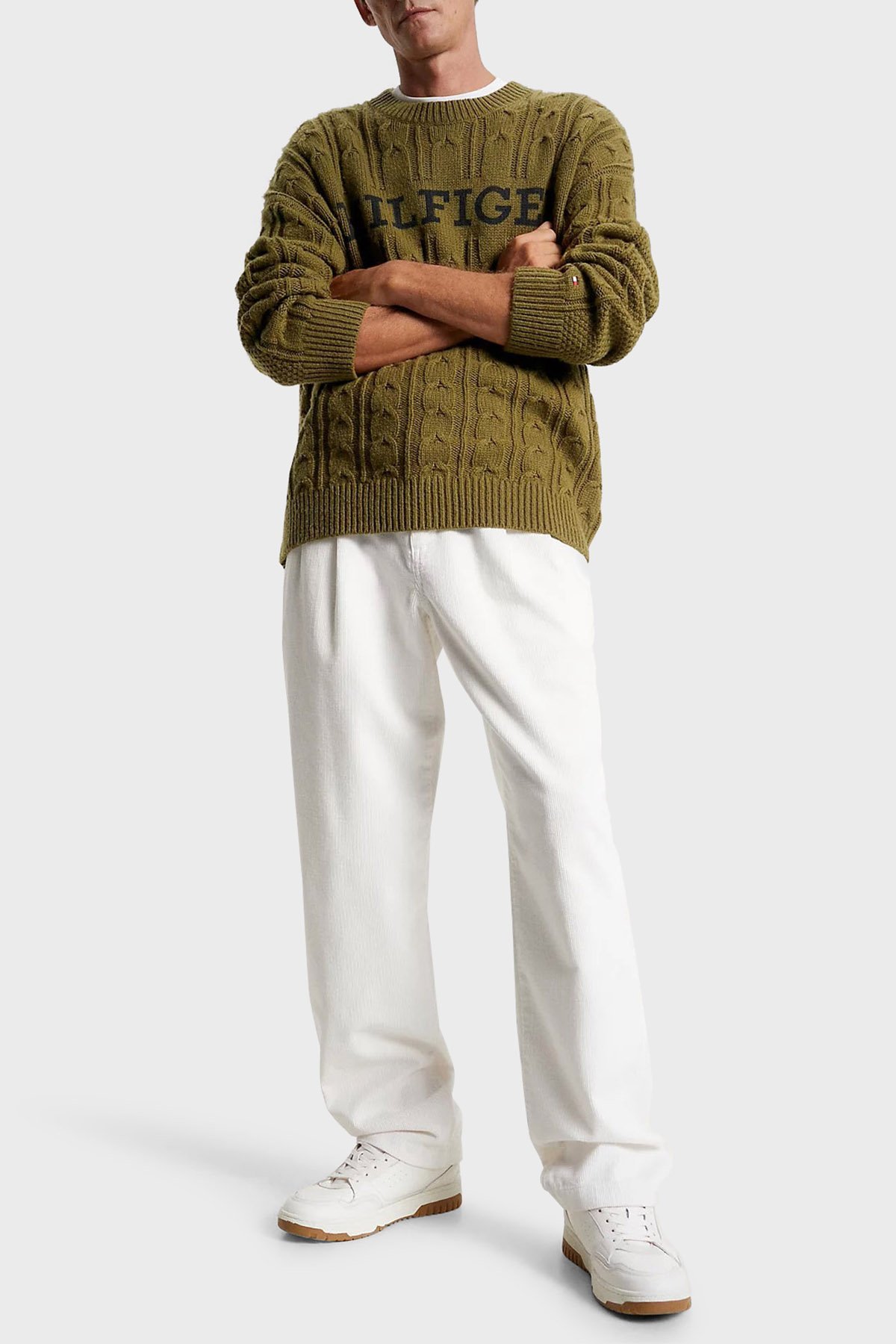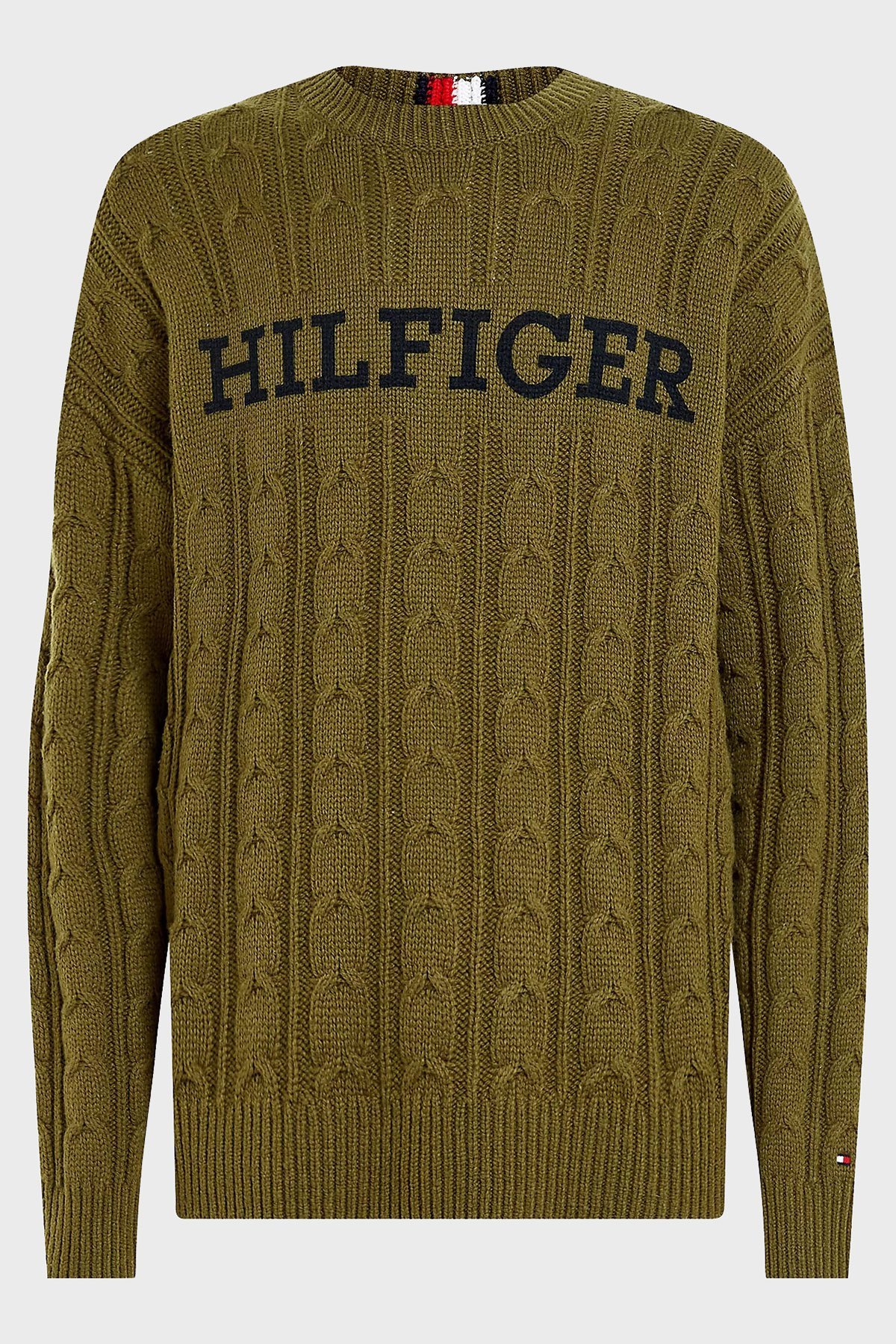 Yünlü Oversize Fit Bisiklet Yaka Erkek Kazak MW0MW33082 0H7 KOYU YEŞİL