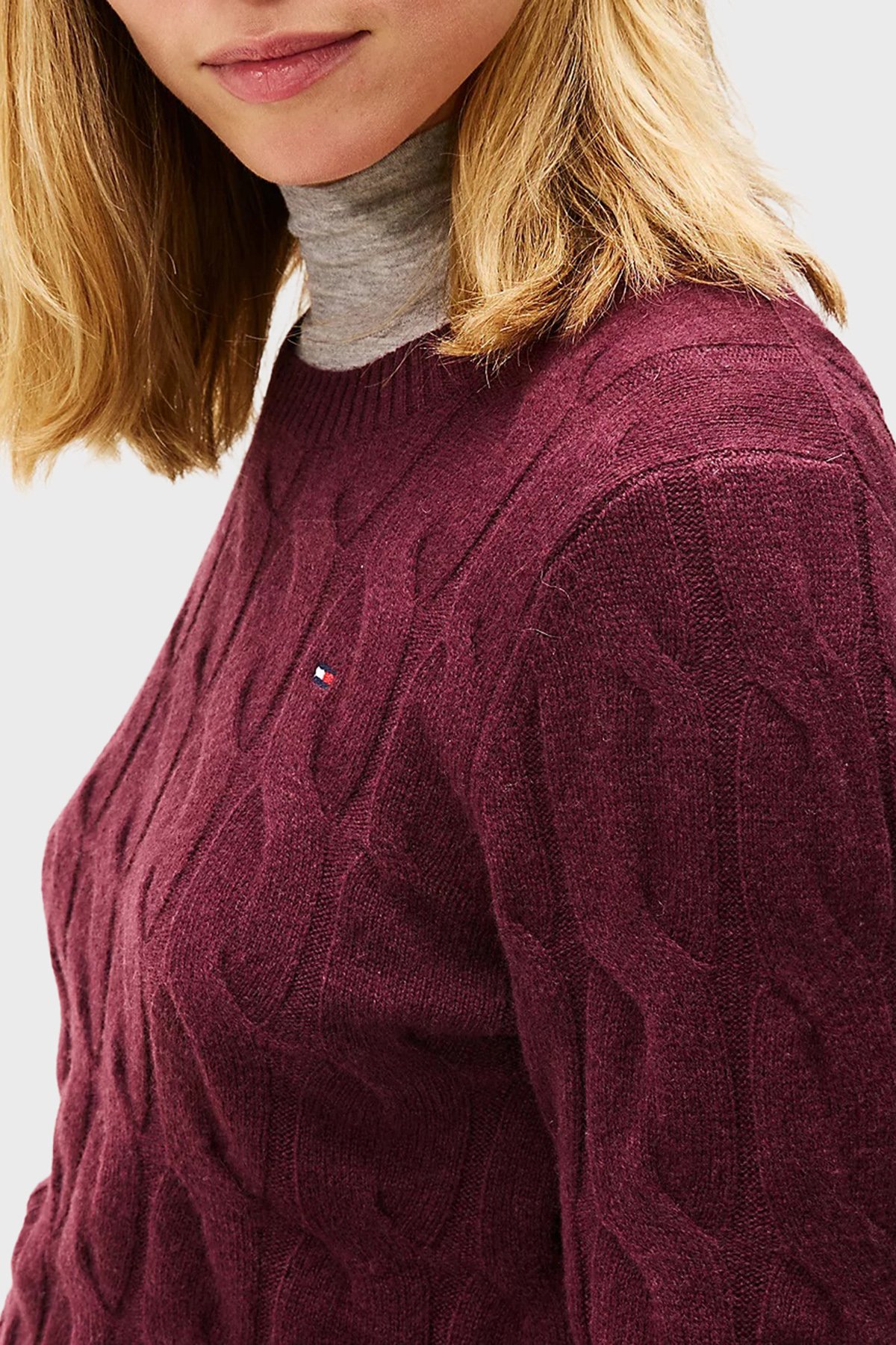 Yünlü Regular Fit Bisiklet Yaka Örgü Bayan Kazak WW0WW43586 XIH BORDO