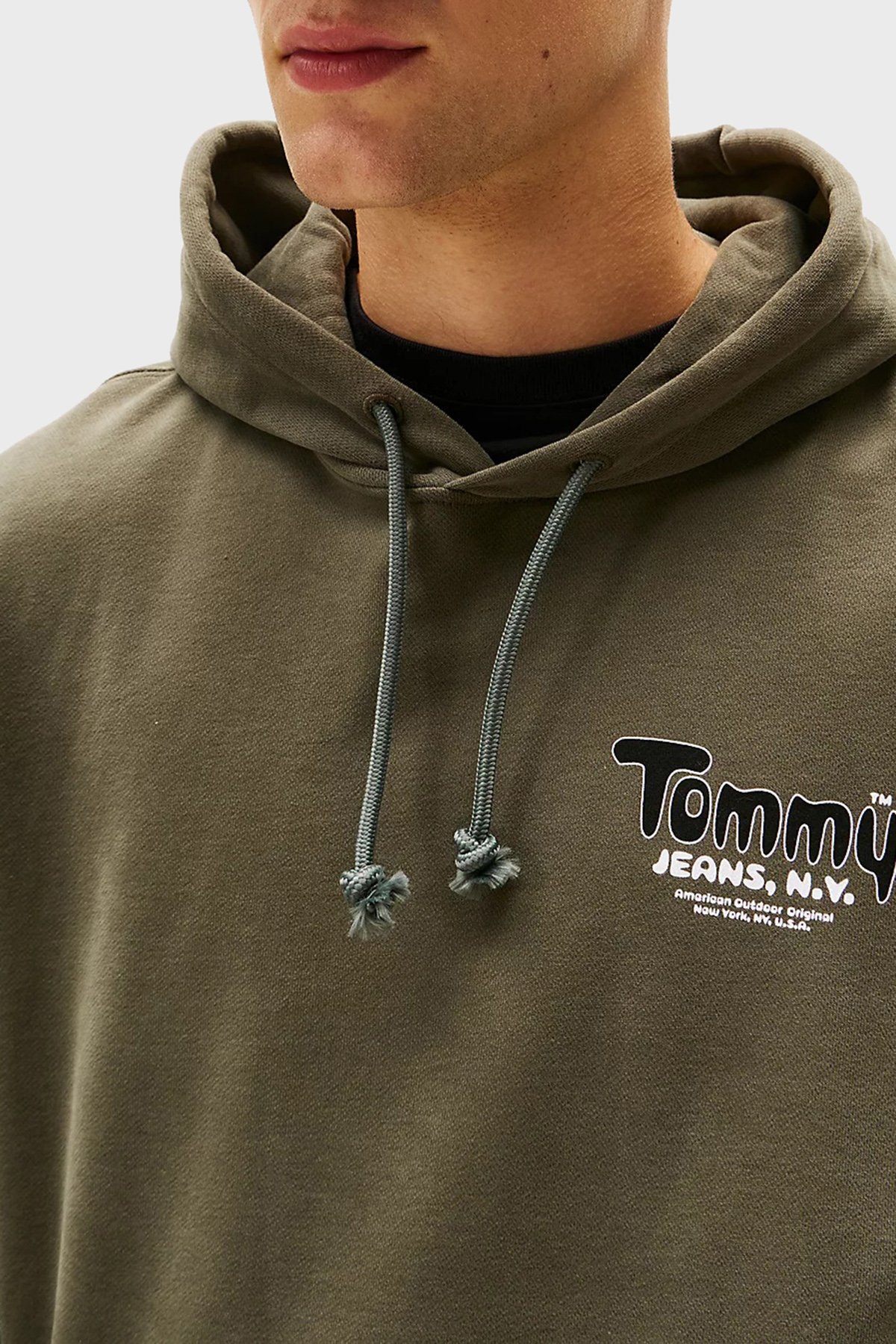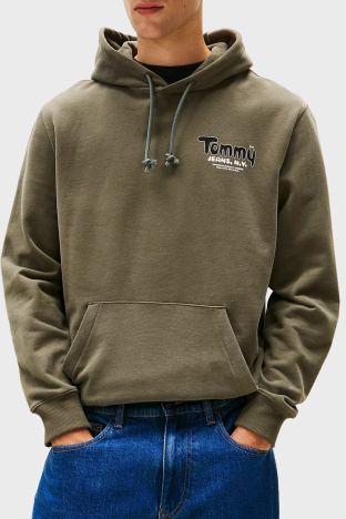 % 100 Pamuk Logolu Regular Fit Kapüşonlu Erkek Sweat DM0DM22086 MRH KOYU YEŞİL