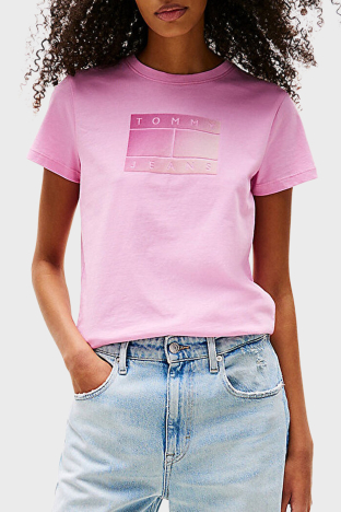 % 100 Pamuk Regular Fit Bisiklet Yaka Logolu Bayan T Shirt DW0DW20905 U06 PEMBE