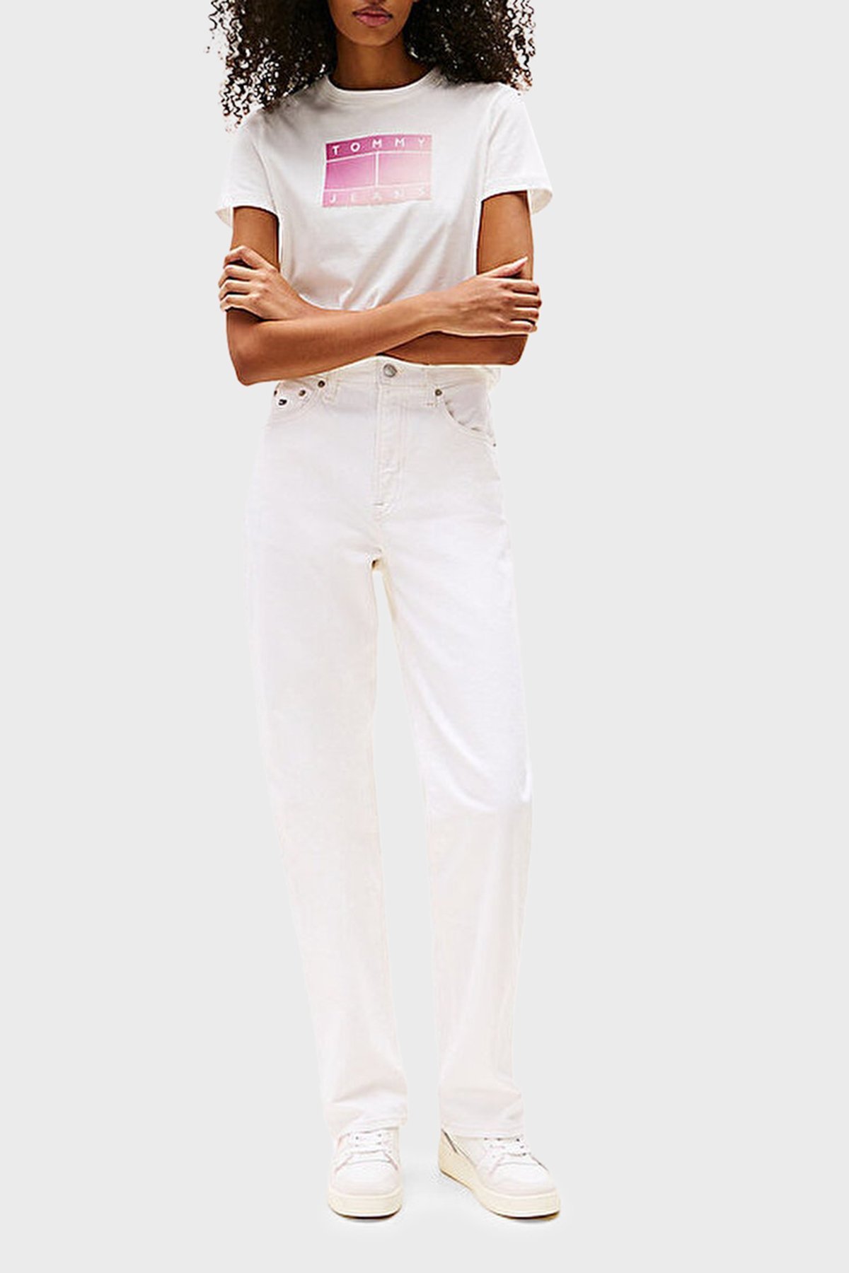 % 100 Pamuk Regular Fit Bisiklet Yaka Logolu Bayan T Shirt DW0DW20905 YBL BEYAZ