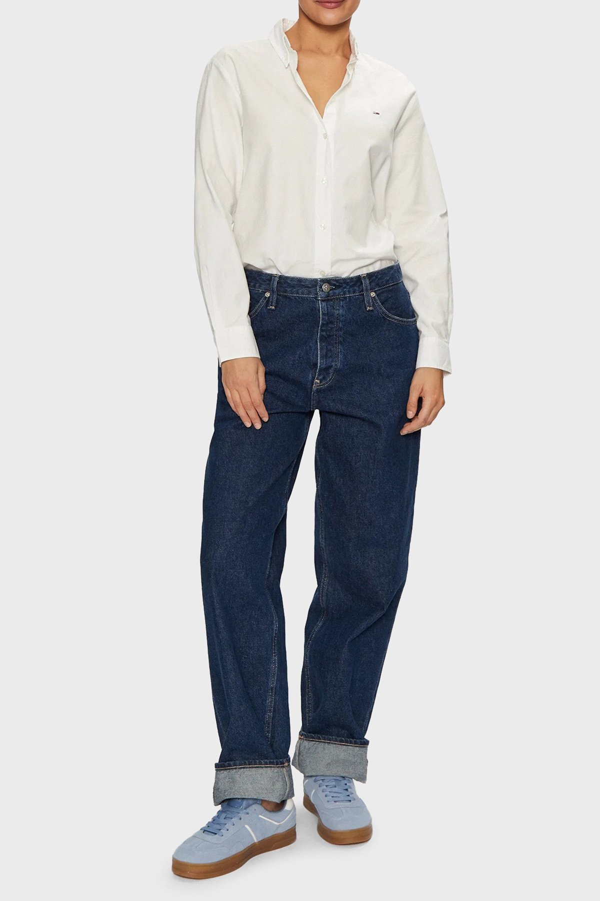 % 100 Pamuk Regular Fit Düğmeli Yaka Bayan Gömlek DW0DW19890 YBL BEYAZ