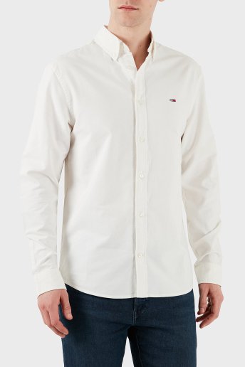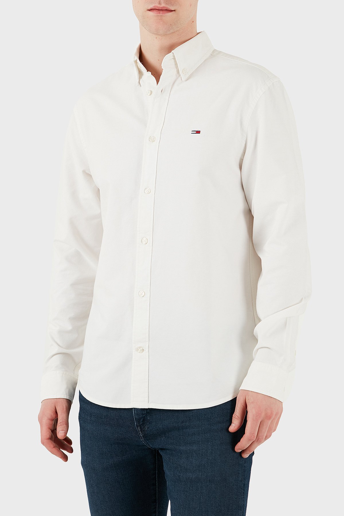 % 100 Pamuk Regular Fit Düğmeli Yaka Erkek Gömlek DM0DM21298 YBL BEYAZ