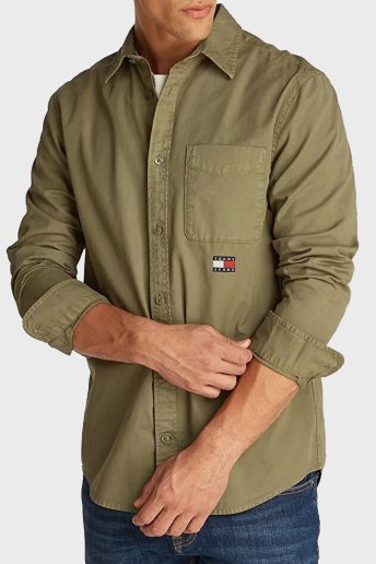 % 100 Pamuk Regular Fit Logolu Erkek Gömlek DM0DM21107 M12 YEŞİL