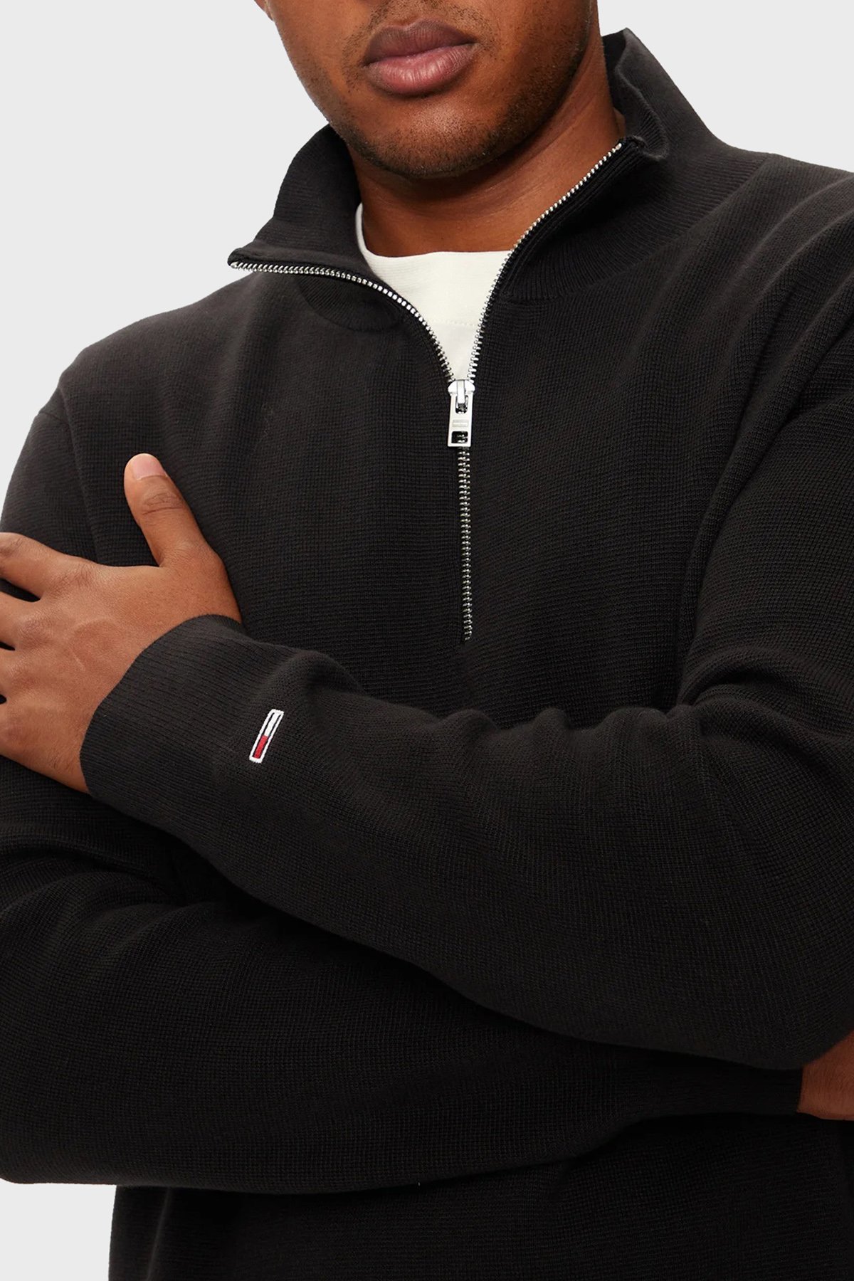 % 100 Pamuk Regular Fit Yarım Fermuarlı Dik Yaka Erkek Kazak DM0DM20596 BDS SİYAH