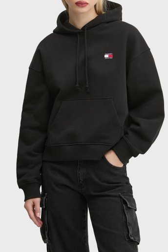 % 100 Pamuk Relaxed Fit Kapüşonlu Bayan Sweat DW0DW19414 BDS SİYAH