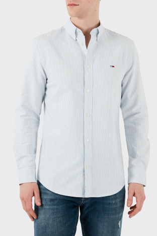 % 100 Pamuk Slim Fit Çizgili Erkek Gömlek DM0DM20668 0A8 MAVİ