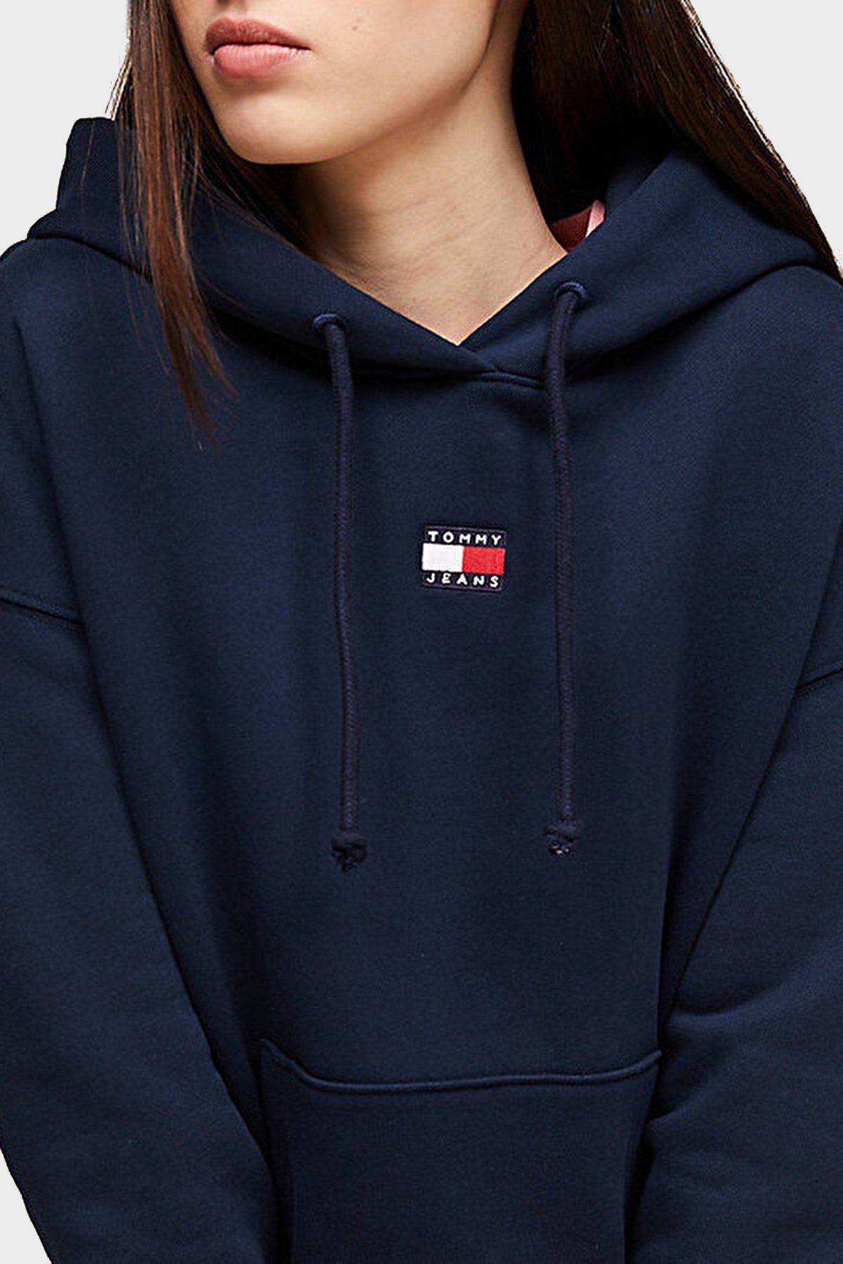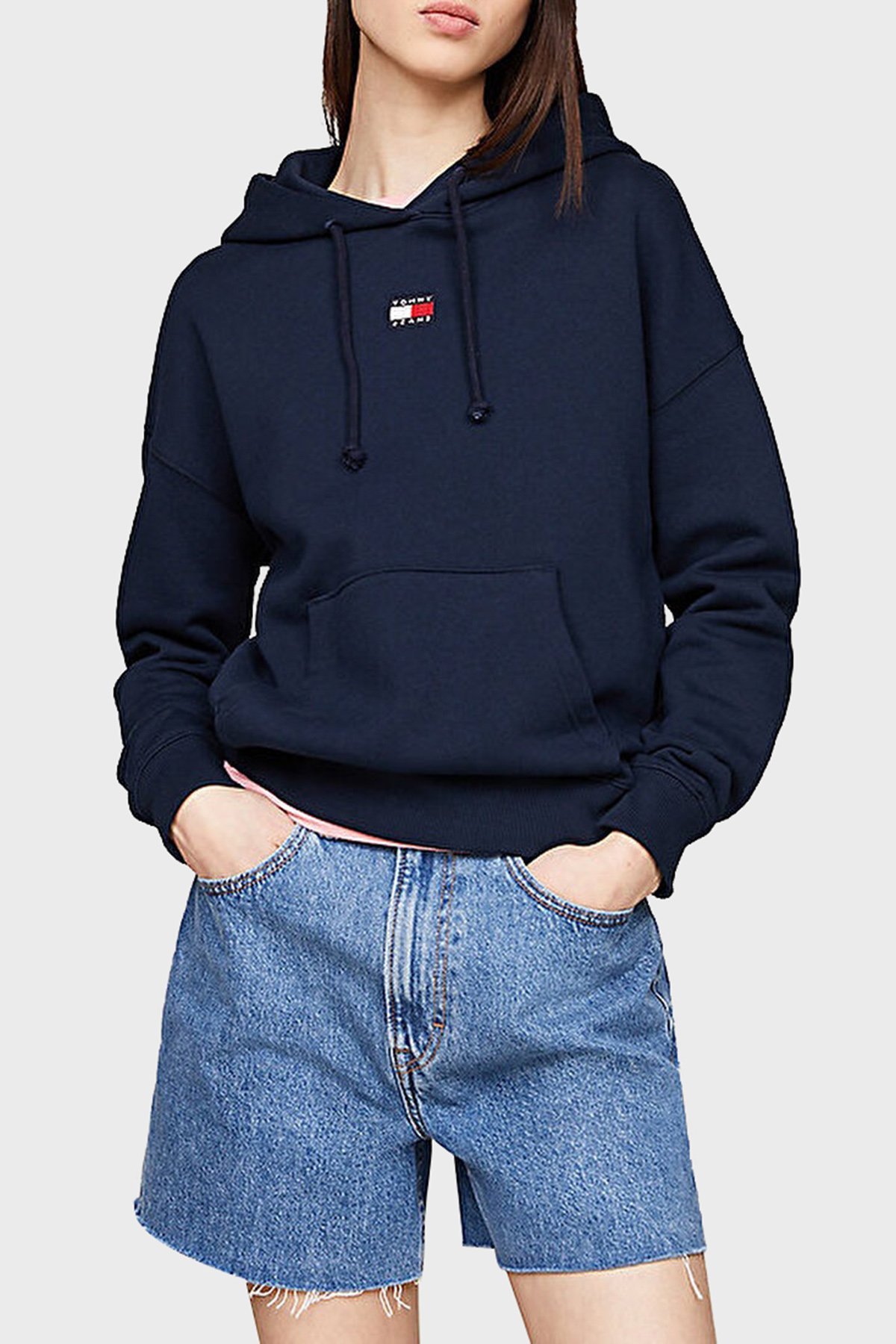 % 100 Pamuklu Regular Fit Kapüşonlu Kanguru Cepli Bayan Sweat DW0DW17326 C1G LACİVERT