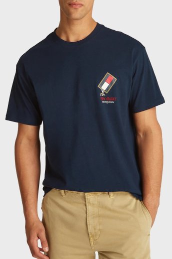 Baskılı % 100 Pamuk Relaxed Fit Bisiklet Yaka Erkek T Shirt DM0DM20351 C1G LACİVERT