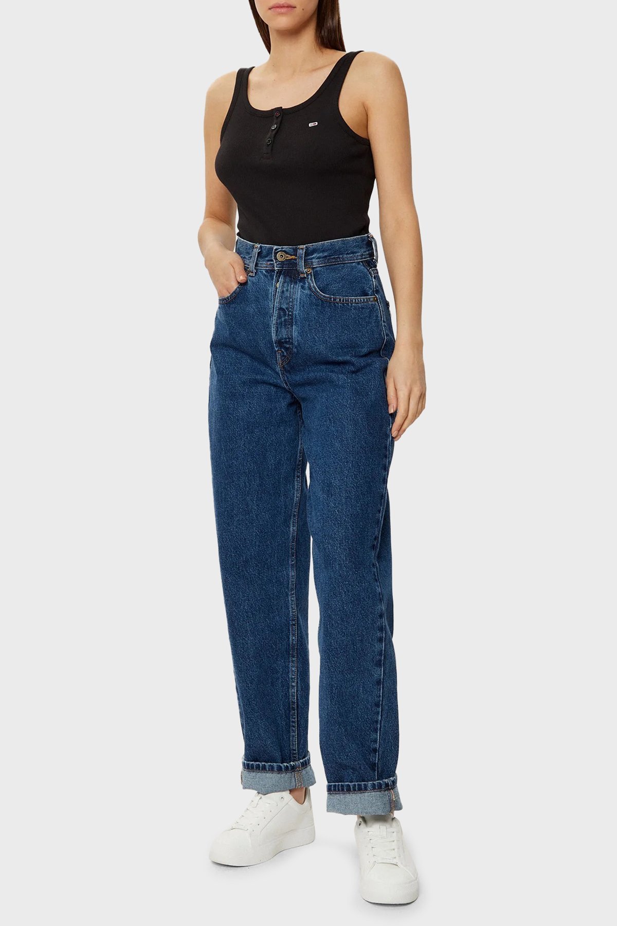 Fitilli % 100 Pamuk Slim Fit Kolsuz Yuvarlak Yaka Bayan Top DW0DW19492 BDS SİYAH