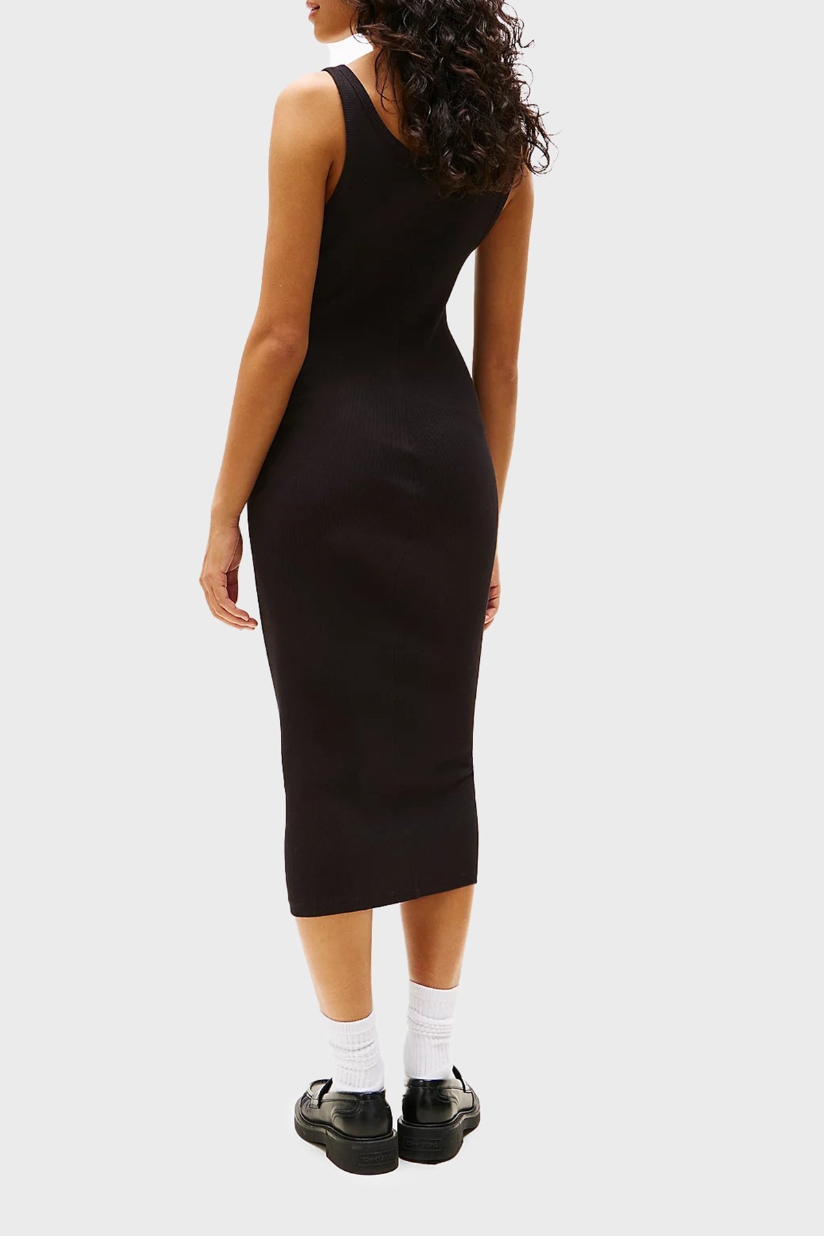 Fitilli % 100 Pamuk Slim Fit Midi Boy Kolsuz Bayan Elbise DW0DW19477 BDS SİYAH