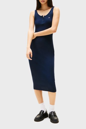Fitilli % 100 Pamuk Slim Fit Midi Boy Kolsuz Bayan Elbise DW0DW19477 C1G LACİVERT