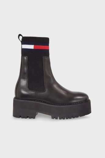 Hakiki Deri Logo Şeritli Chelsea Çorap Bayan Çizme EN0EN02301 BDS SİYAH