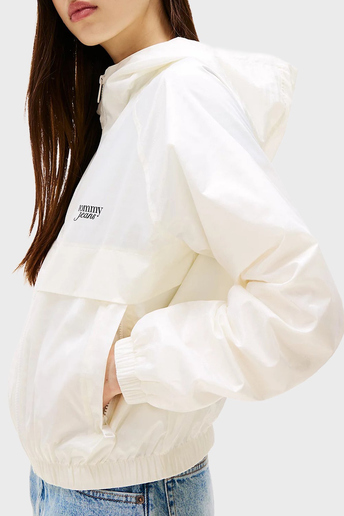 Jakarlı Regular Fit Kapüşonlu Su İtici Bayan Ceket DW0DW20952 YBL BEYAZ