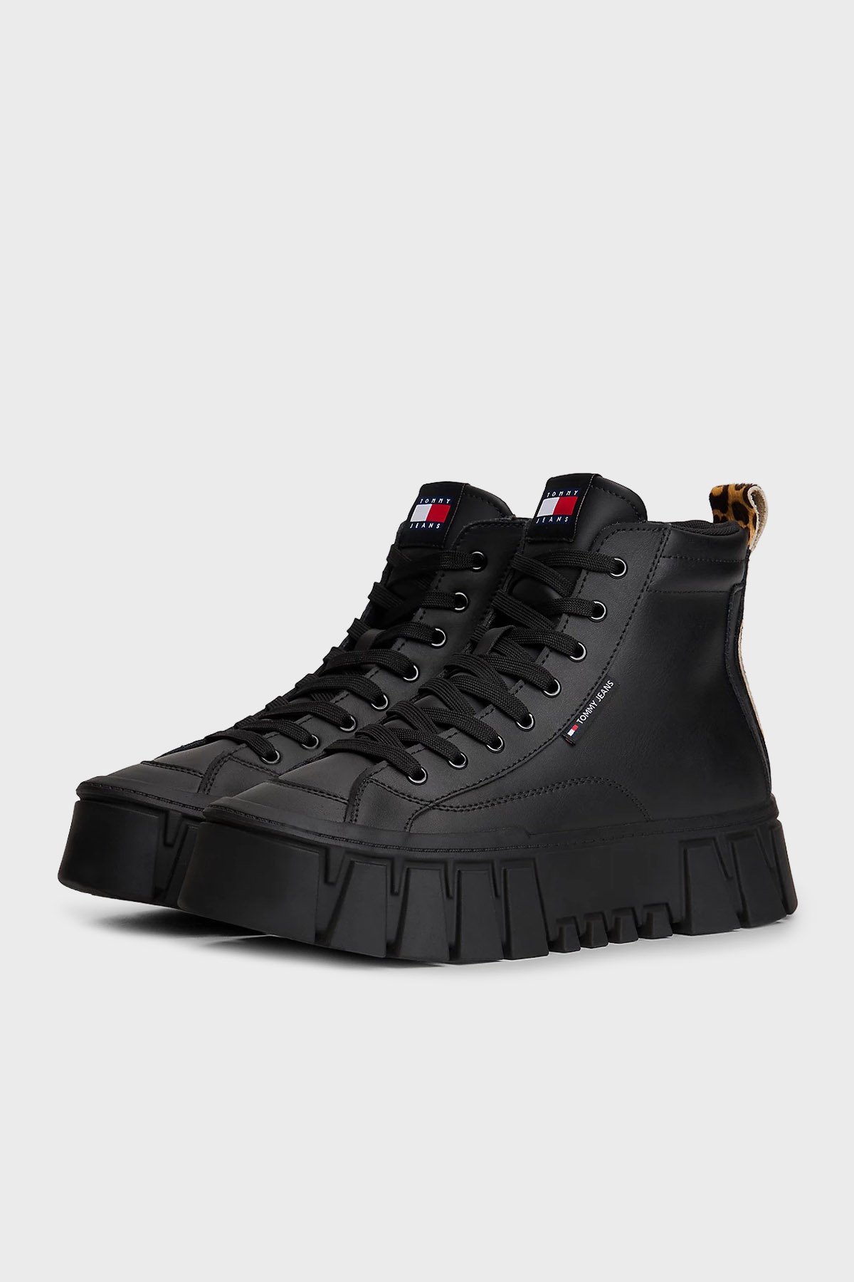 Kalın Tabanlı Leopar Detaylı Sneaker Bayan Ayakkabı EN0EN02858 BDS SİYAH