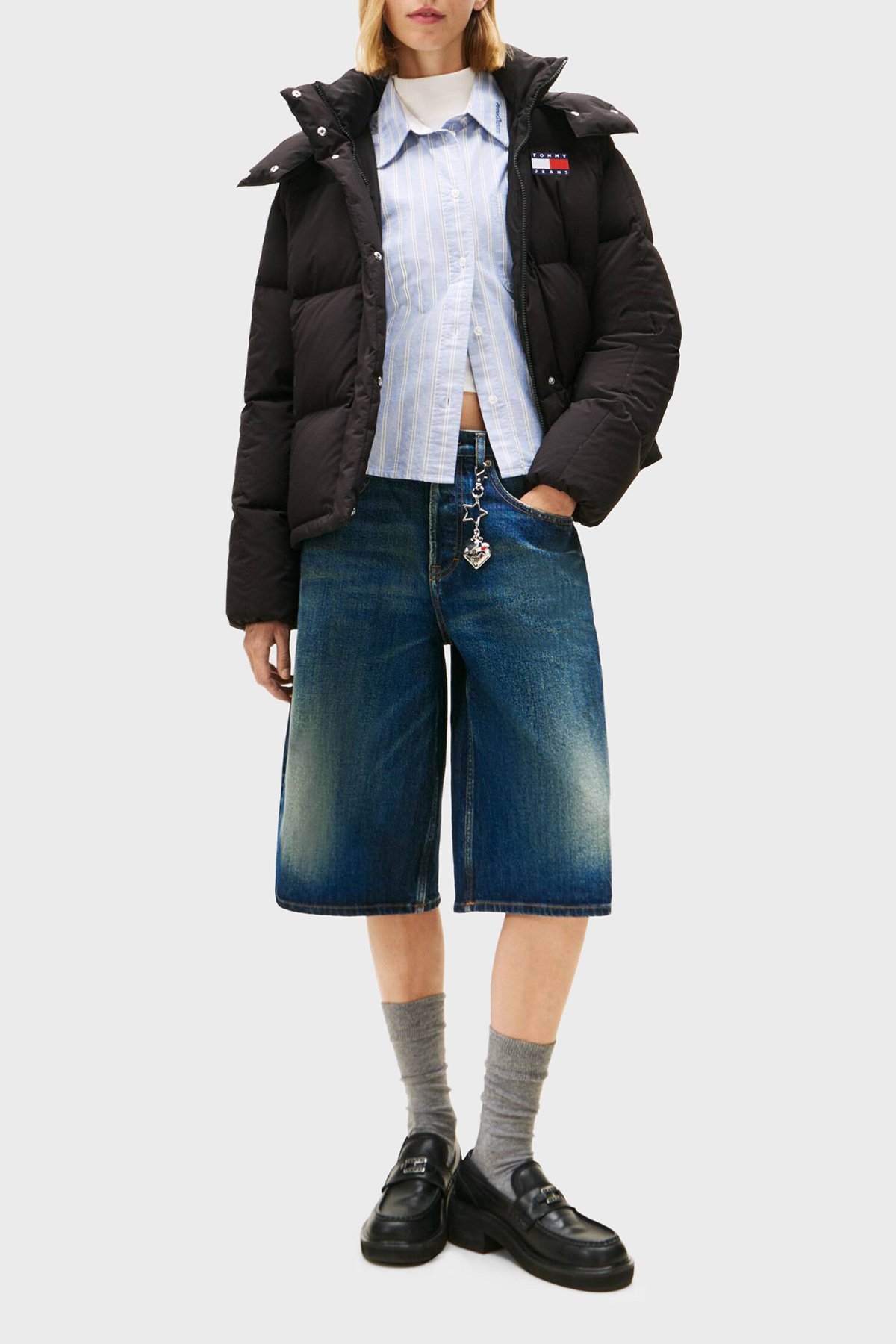 Kapitoneli Relaxed Fit Çıkarılabilir Kapüşonlu Şişme Bayan Mont DW0DW21623 BDS SİYAH