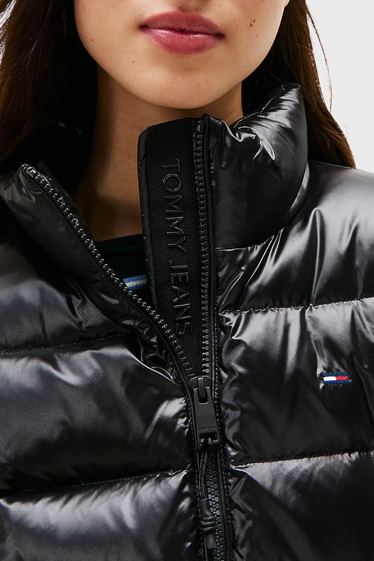 Kapitoneli Slim Fit Dik Yaka Su İtici Parlak Şişme Bayan Mont DW0DW21618 BDS SİYAH