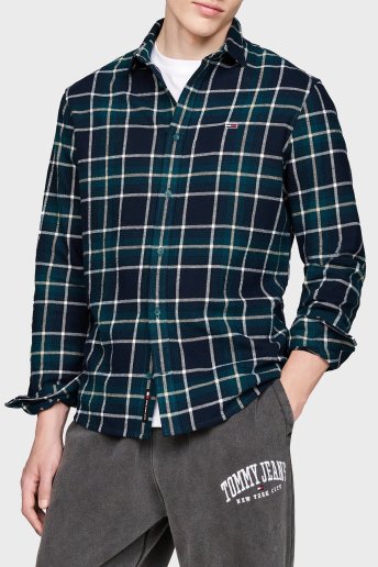 Kareli % 100 Pamuk Relaxed Fit Erkek Gömlek DM0DM19651 CWG KOYU YEŞİL