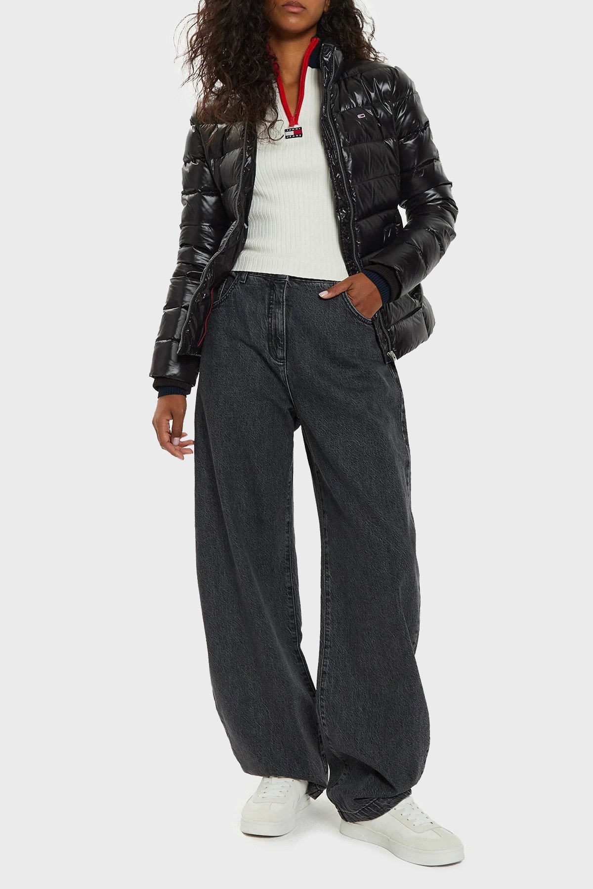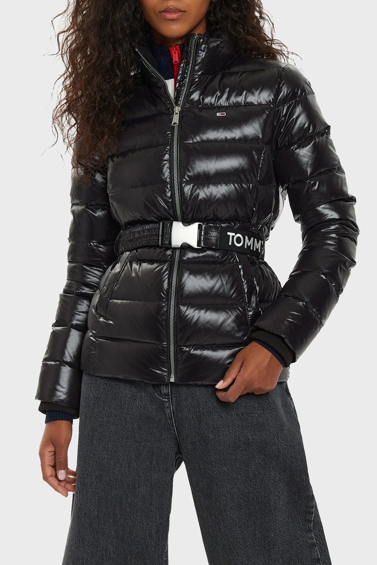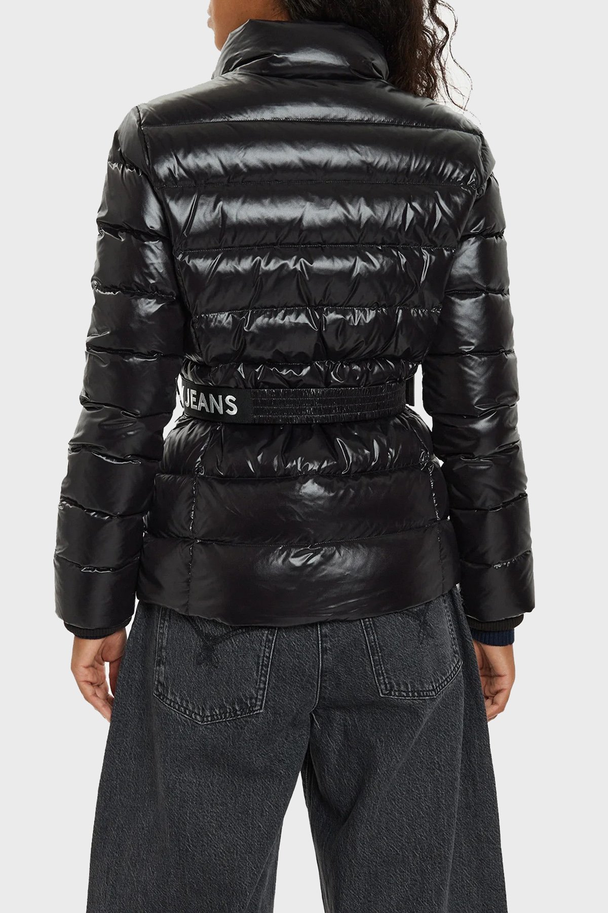 Kuş Tüyü Dolgulu Slim Fit Dik Yaka Kemerli Şişme Bayan Mont DW0DW18826 BDS SİYAH