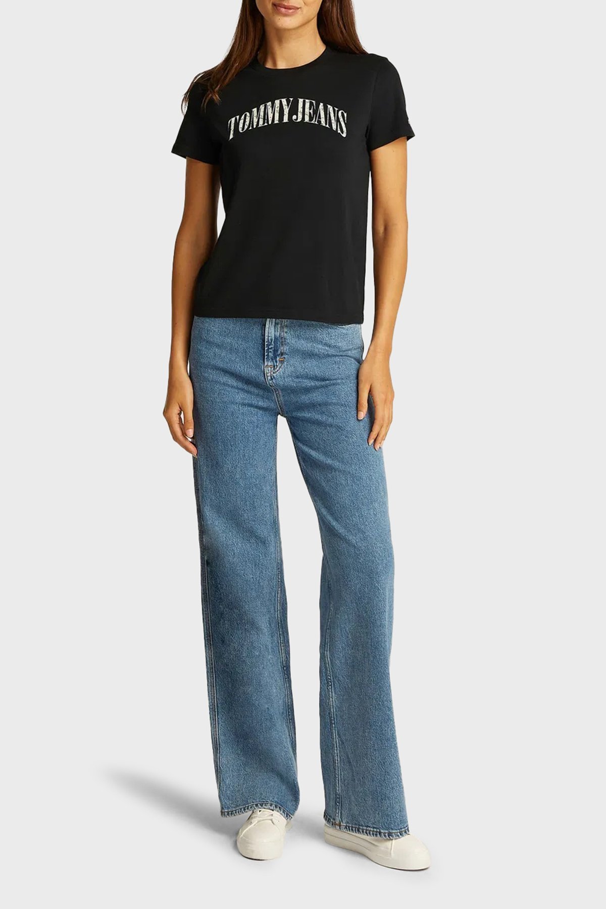 Logo Baskılı Pamuklu Regular Fit Bisiklet Yaka Bayan T Shirt DW0DW20161 BDS SİYAH