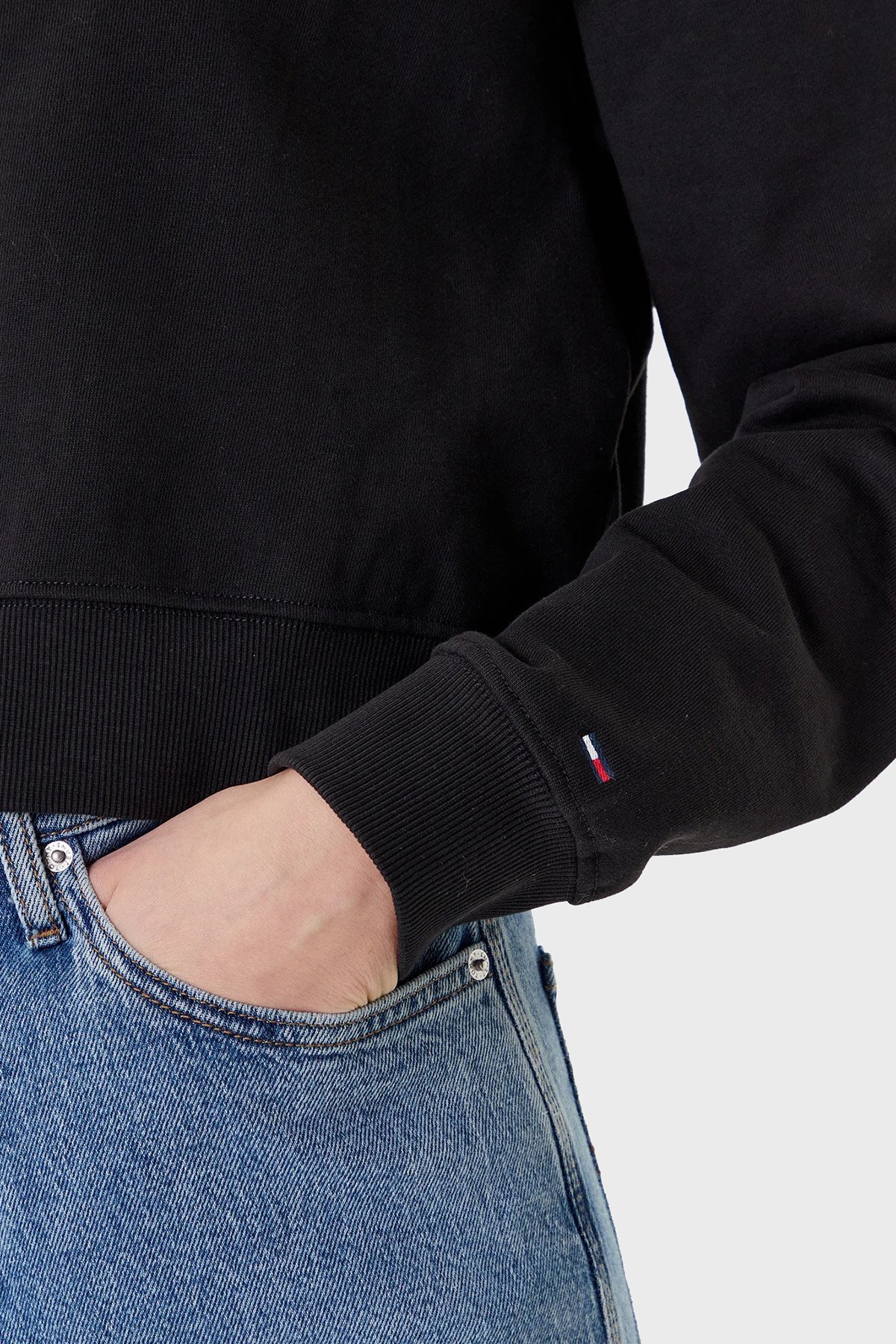 Logo Baskılı Pamuklu Relaxed Fit Kapüşonlu Crop Bayan Sweat DW0DW21408 BDS SİYAH