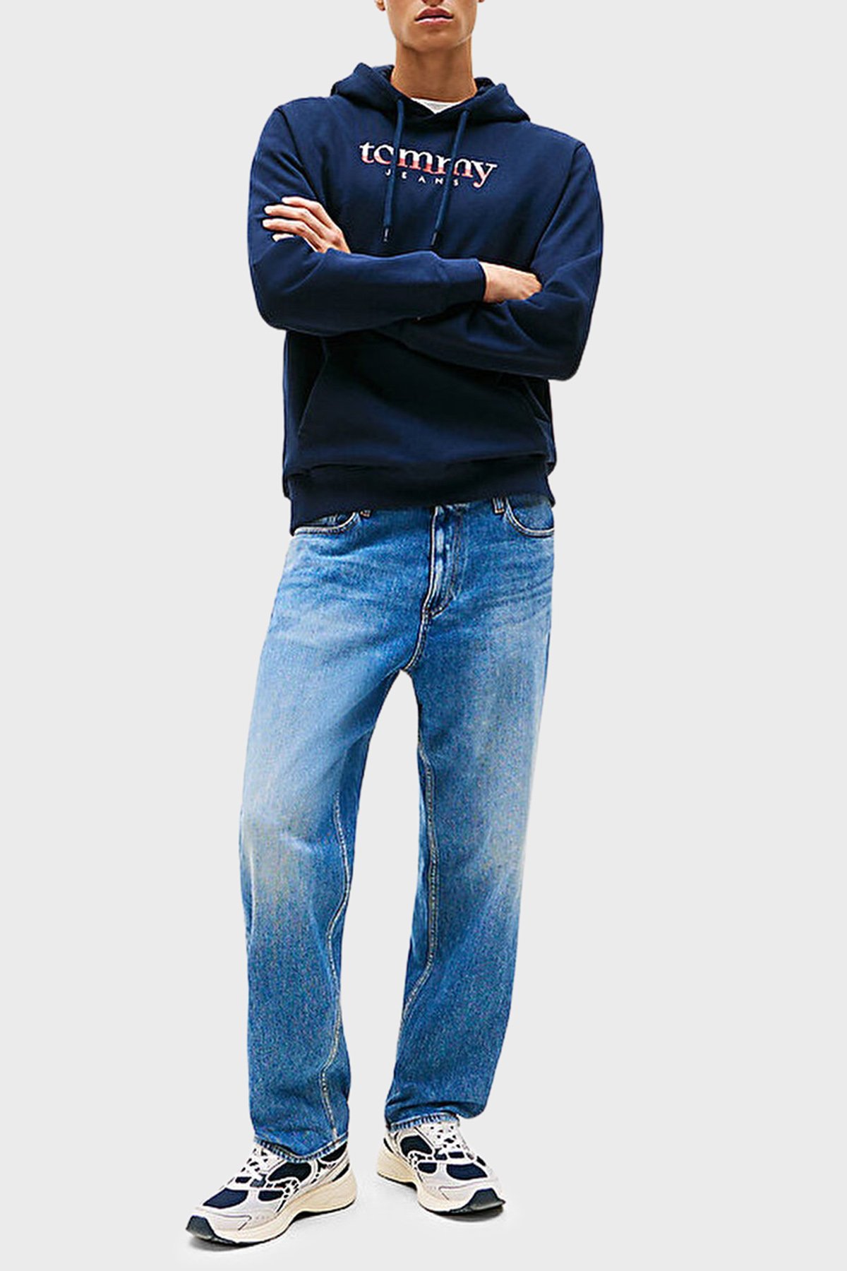 Logolu % 100 Pamuk Regular Fit Kapüşonlu Erkek Sweat DM0DM22113 C1G LACİVERT