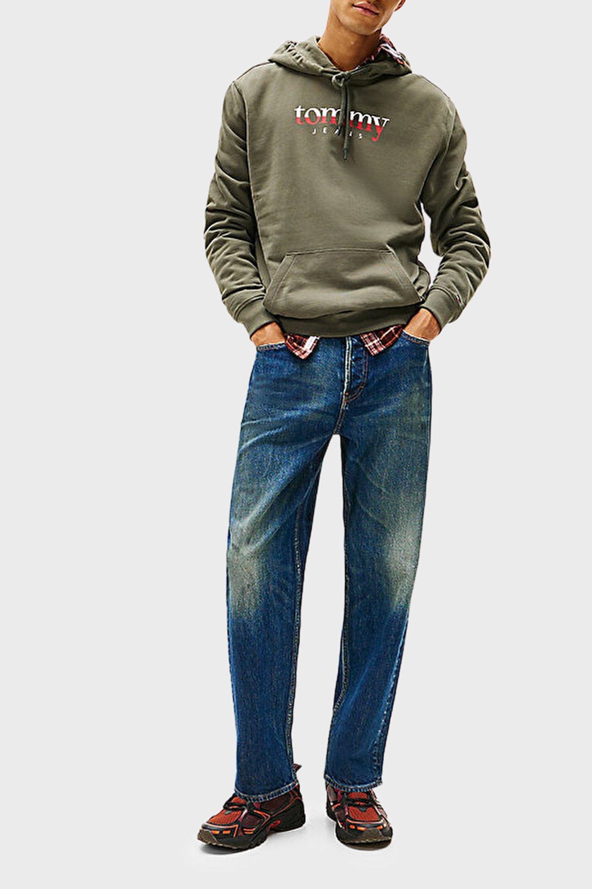 Logolu % 100 Pamuk Regular Fit Kapüşonlu Erkek Sweat DM0DM22113 MRH KOYU YEŞİL