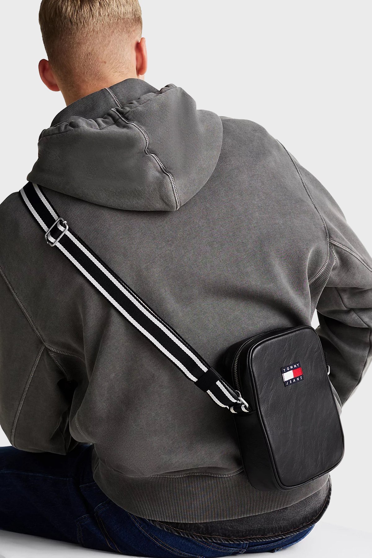 Logolu Ayarlanabilir Çapraz Askılı Erkek Çanta AM0AM12898 BDS SİYAH