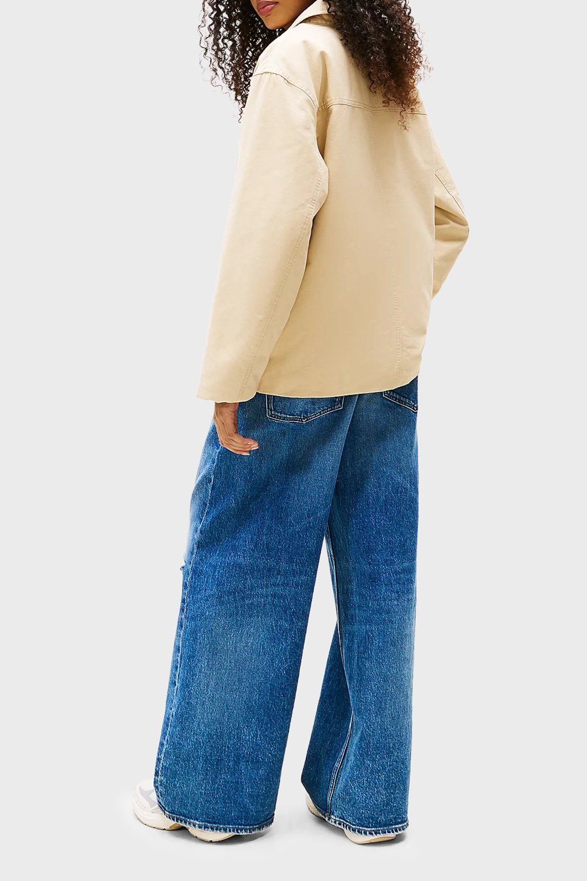 Logolu Boxy Fit Klasik Yaka Dolgulu Bayan Mont DW0DW21382 RBV BEJ
