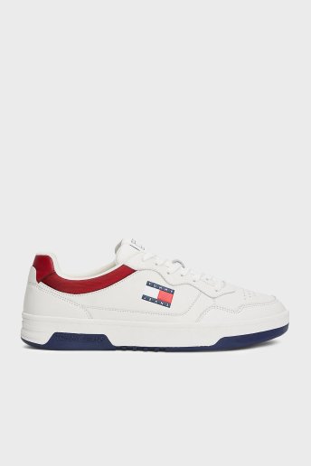 Tommy Jeans Logolu Deri Sneaker Erkek Ayakkabı EM0EM01443 0G1 BEYAZ-LACİVERT
