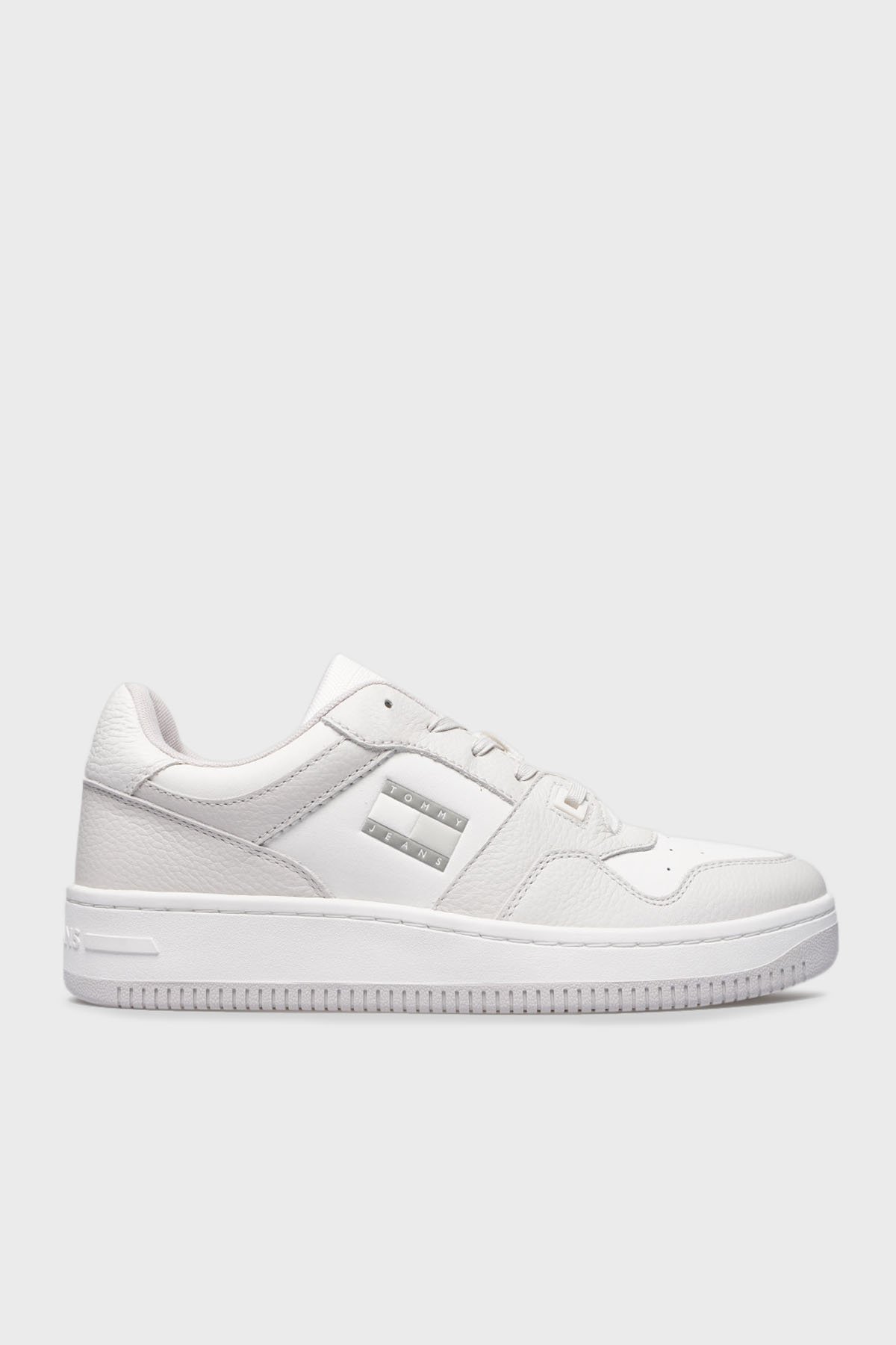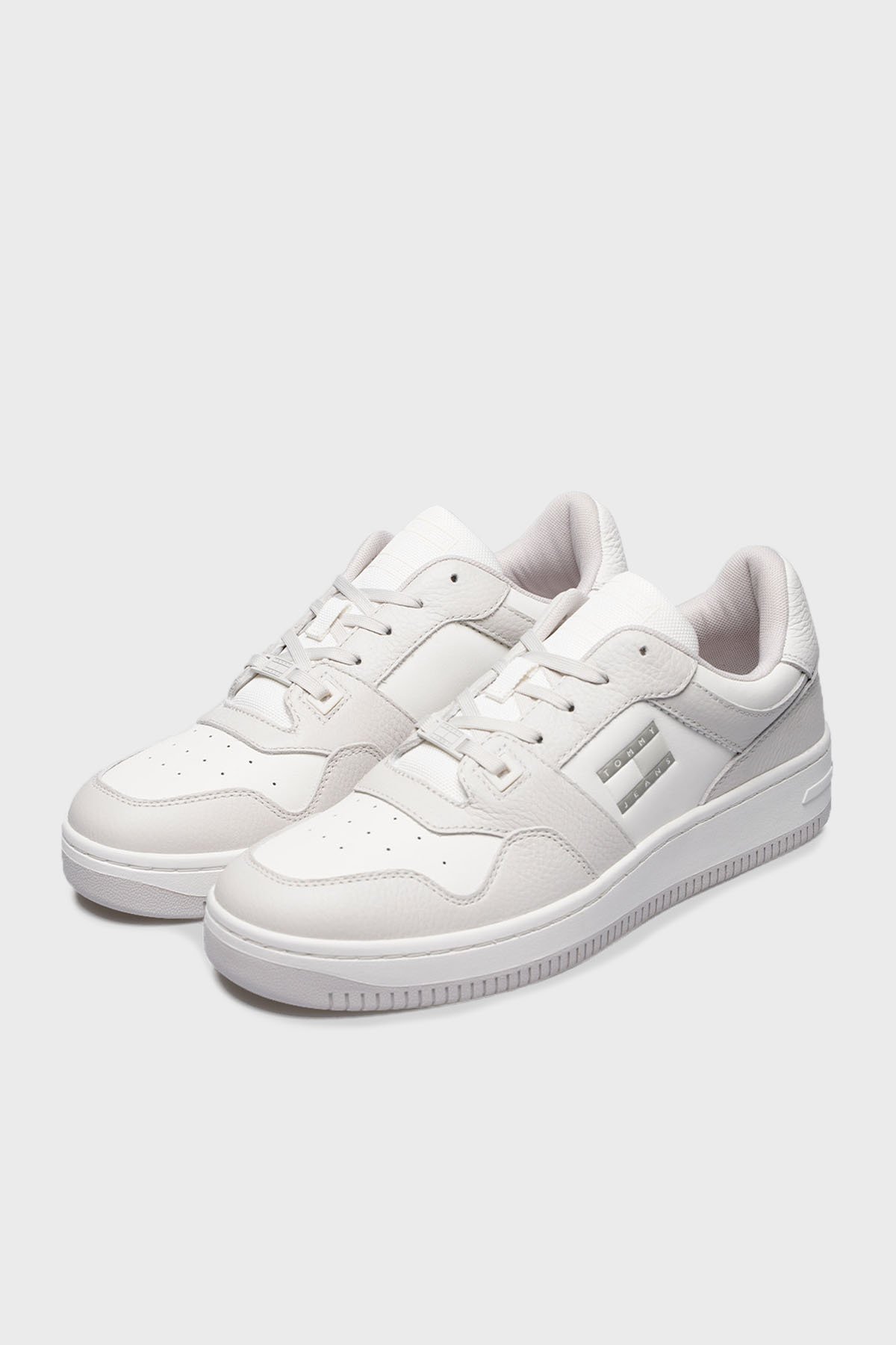 Tommy Jeans Logolu Deri Sneaker Erkek Ayakkabı EM0EM01513 P06 BEYAZ-GRİ