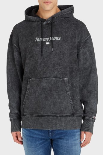 Logolu Kapüşonlu % 100 Pamuk Relaxed Fit Erkek Sweat DM0DM17787 BDS SİYAH