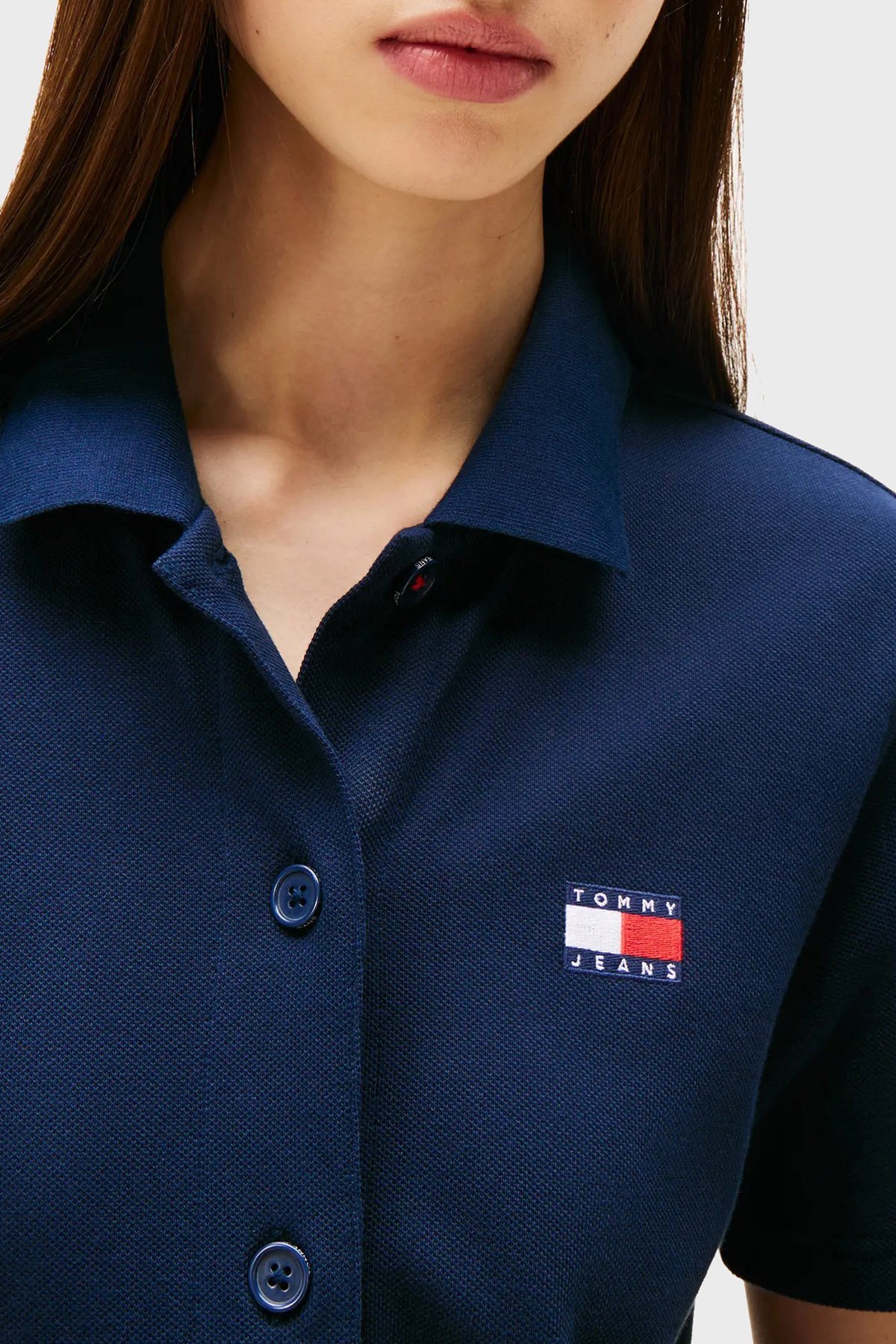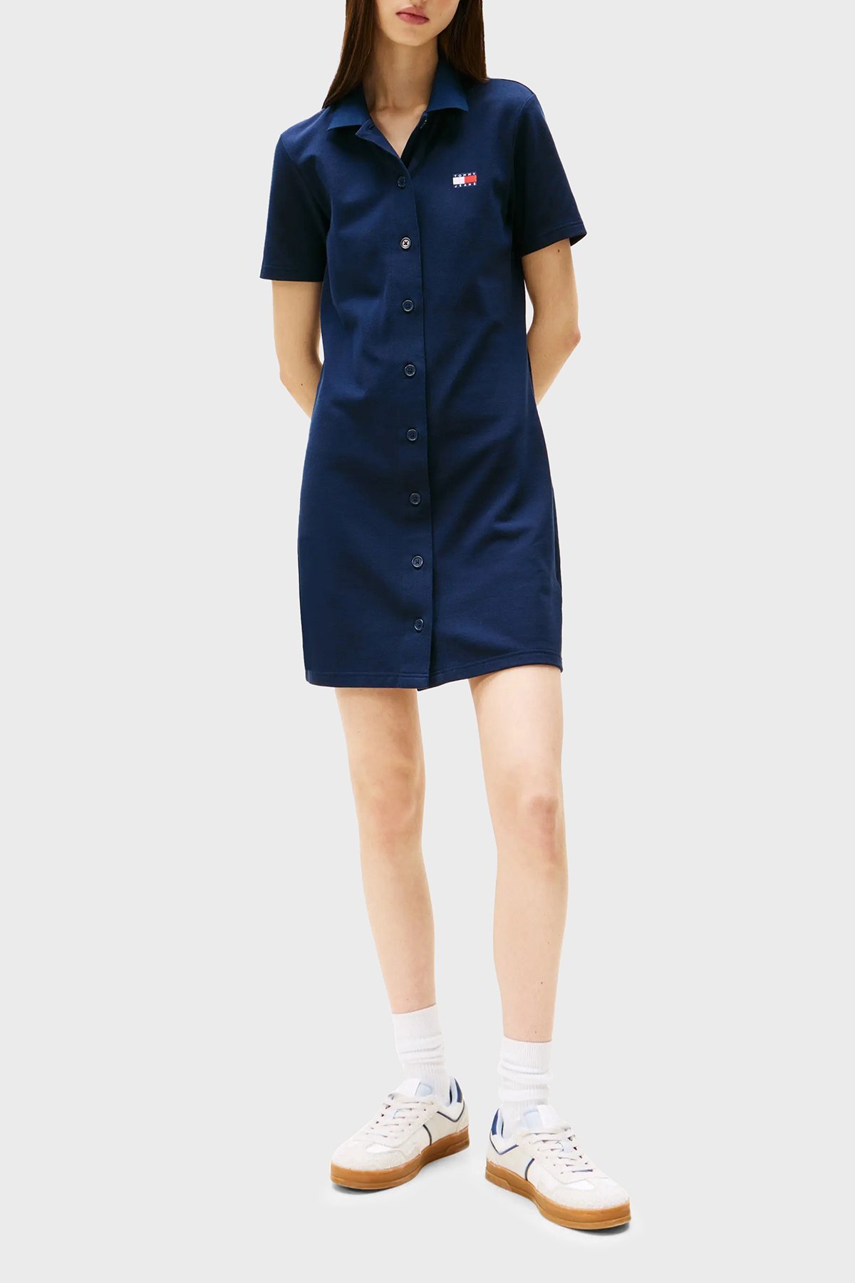 Logolu Pamuklu Regular Fit Polo Yaka Mini Boy Bayan Elbise DW0DW20302 C1G LACİVERT