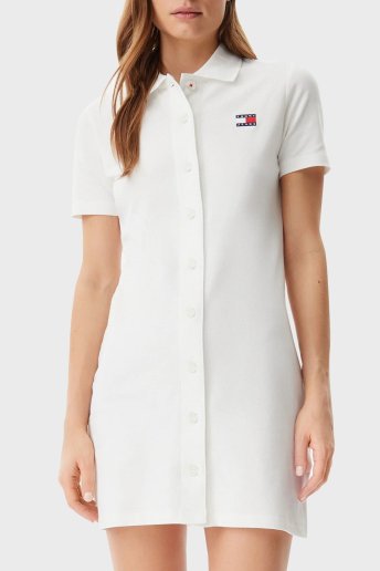 Logolu Pamuklu Regular Fit Polo Yaka Mini Boy Bayan Elbise DW0DW20302 YBL BEYAZ