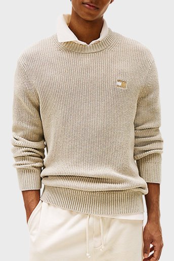 Logolu Pamuklu Slim Fit Bisiklet Yaka Örgü Erkek Kazak DM0DM21652 AD2 BEJ