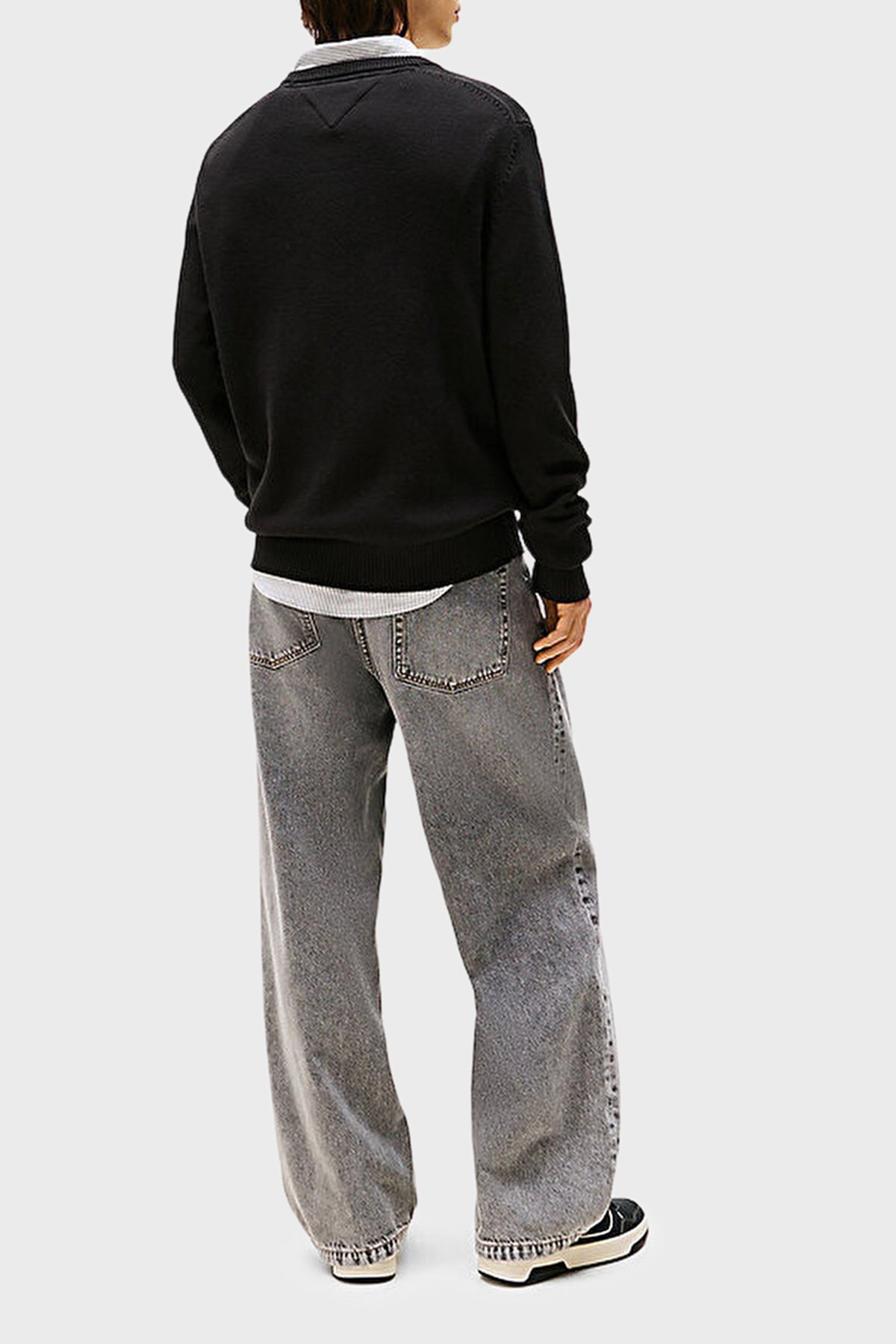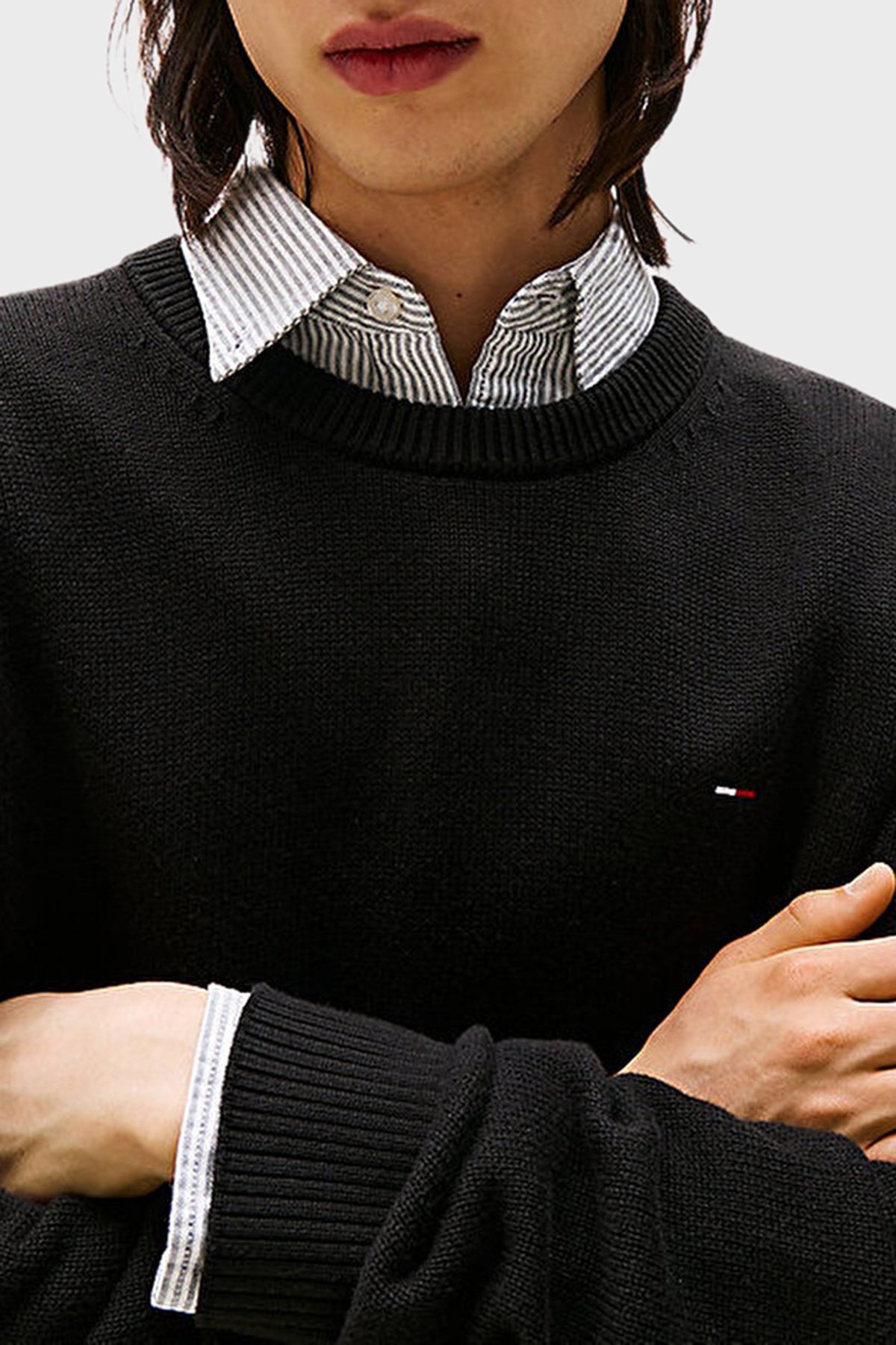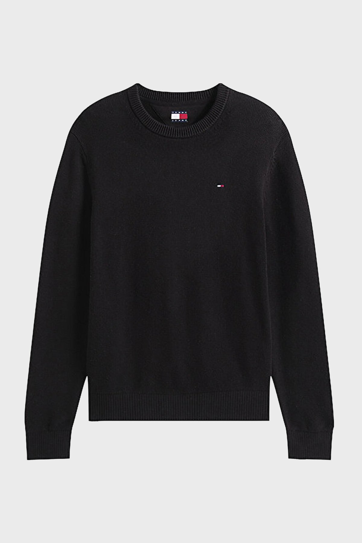 Logolu Pamuklu Slim Fit Bisiklet Yaka Örme Erkek Kazak DM0DM21787 BDS SİYAH