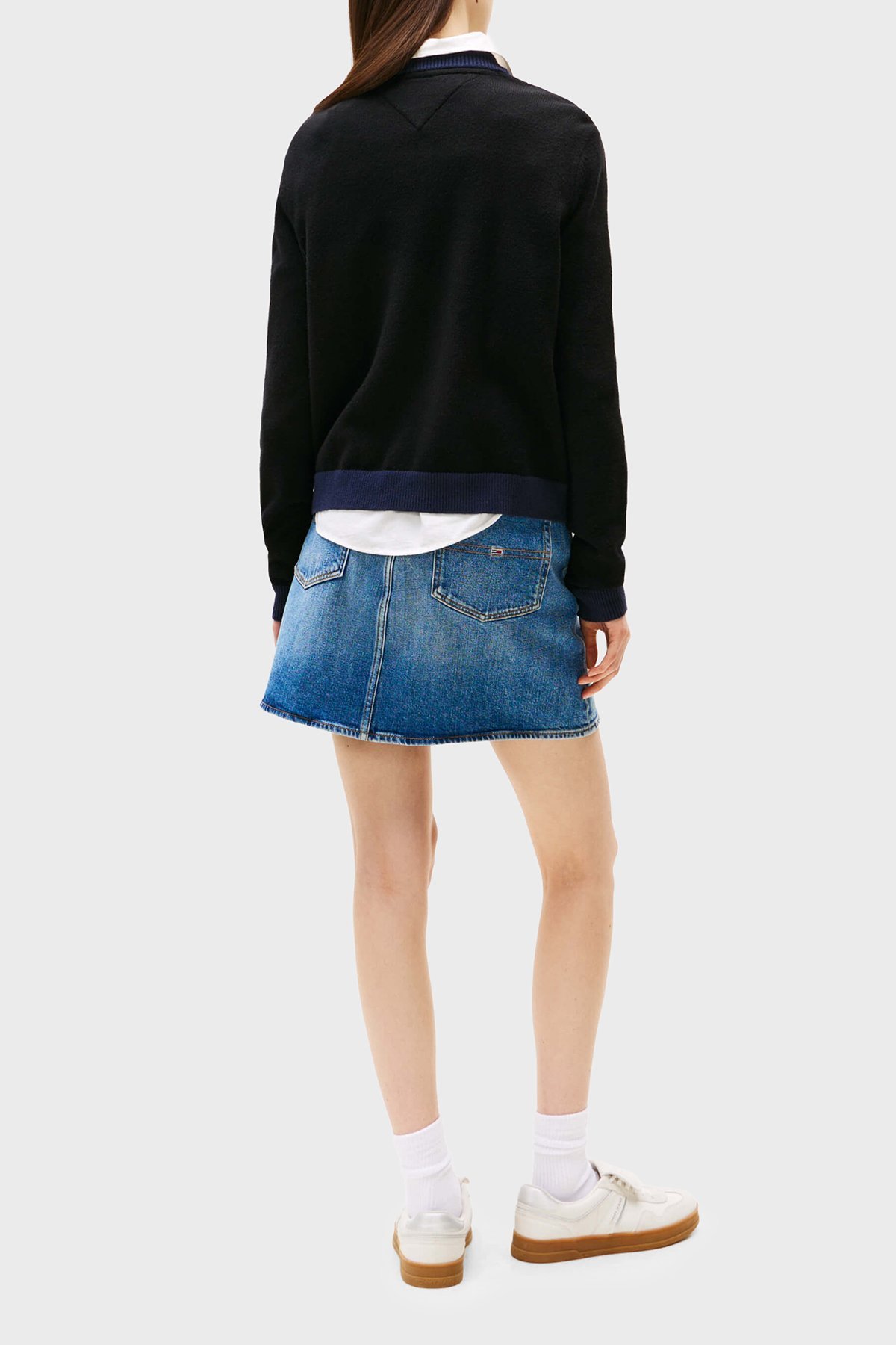 Logolu Regular Fit Bisiklet Yaka Bayan Kazak DW0DW20970 BDS SİYAH